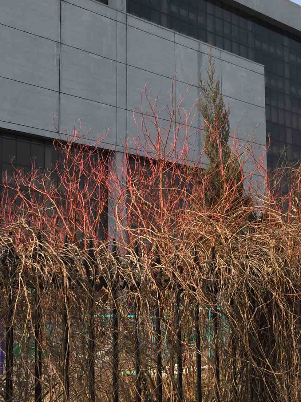 姐妹们都在晒各自的春天、有鲜花、有嫩柳。趁周末、我也在较大城市-铁岭寻找春天的脚步,还别说、真的发现了:路边四叶草渐绿、野菜生机勃勃、有些隐藏在枯草下、柳枝渐黄。道路另一侧院墙内红红一片、以为是小桃红打苞、走近才发现是枝干的颜色。暖暖的阳光照在我的身上、心情好极啦、万物复苏、春天来啦!姐妹们动起来吧!