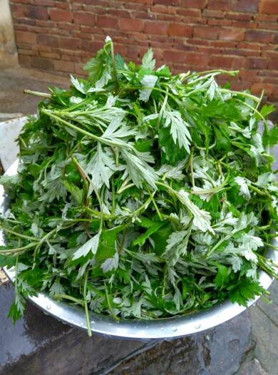我们家乡叫这个为蒿,清明前采来碾碎蒸米饭,记不得是否要惨糯米,但会加腊肉丁,香干丁,葱蒜,可香了