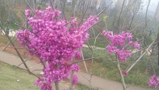 家门口的风光带,春意盎然,到处都是绿油油的,还有成片的樱花林,每天散步都去那里,心情很好
