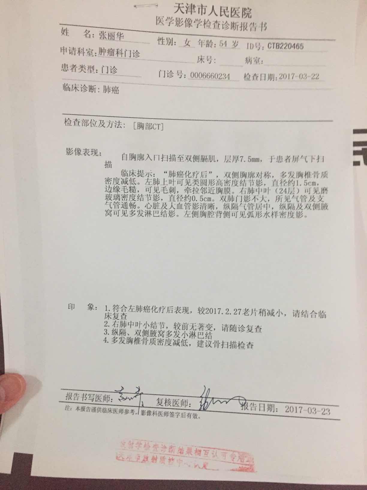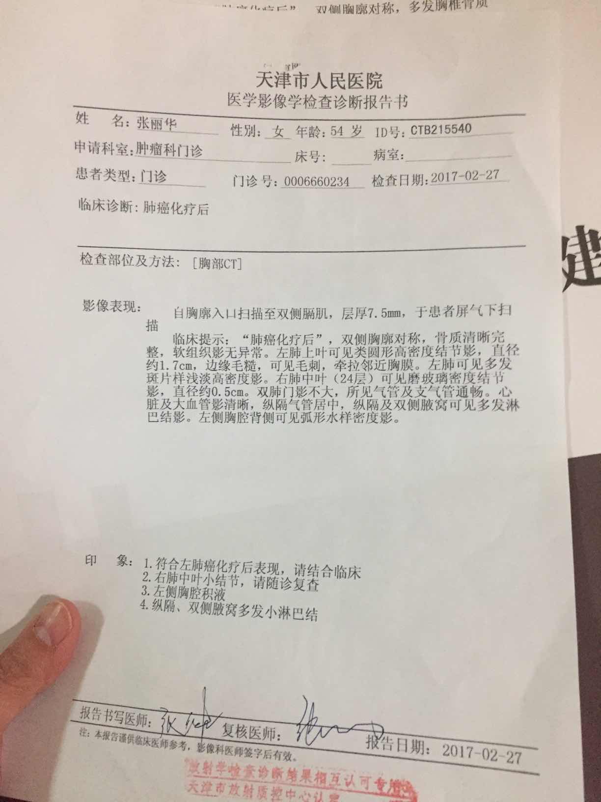 拿到了CT报告 对比上个月结果