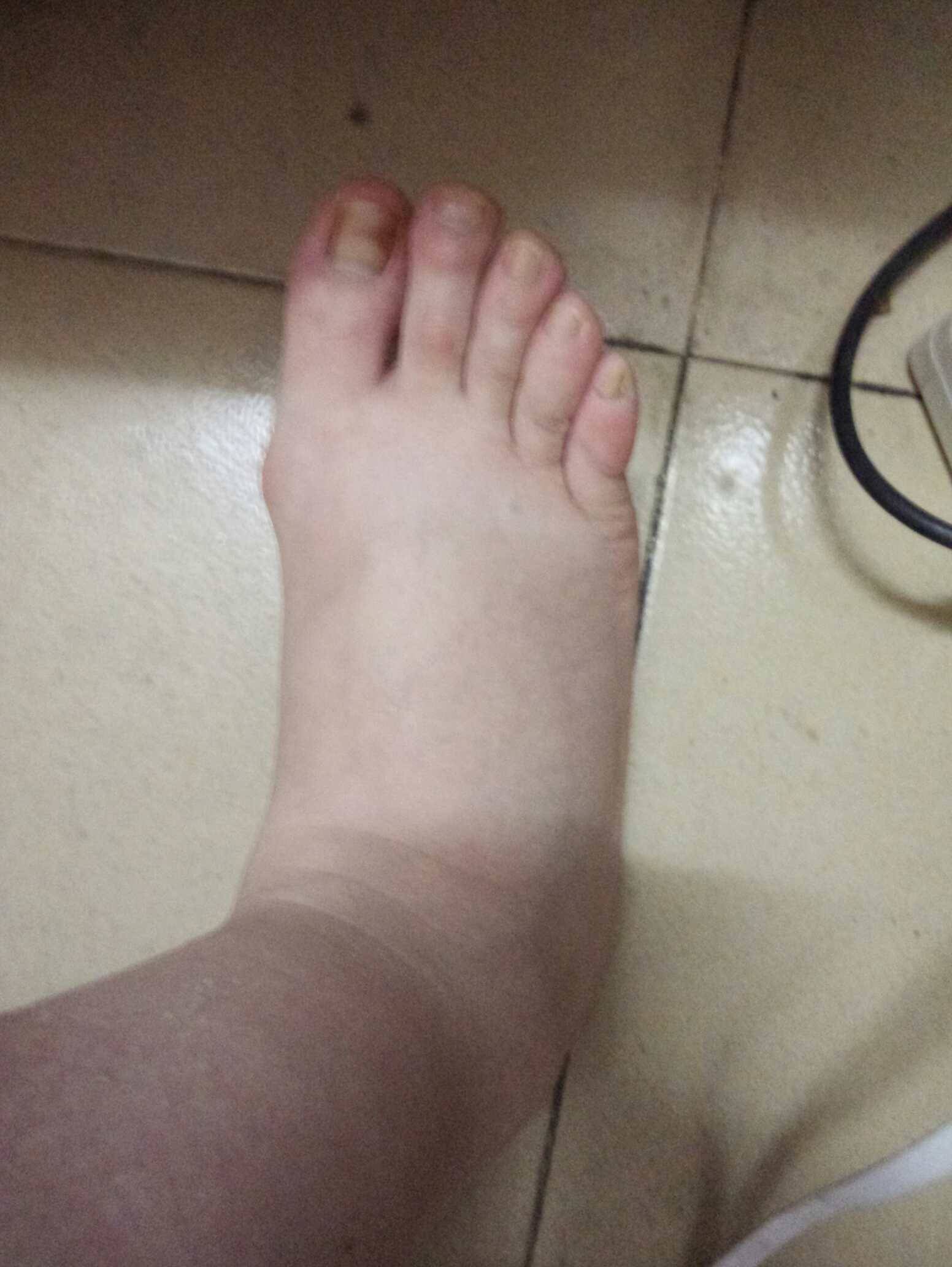 还记得前天发了照片问我的脚是不是肿了,那时候还就是那一个地方,脚掌还是正常的,可是昨天开始脚掌脚趾头都开始肿了,昨晚回家用开水泡了下脚,按了下摩,睡觉再把脚垫高,早上醒来脚还是肿的