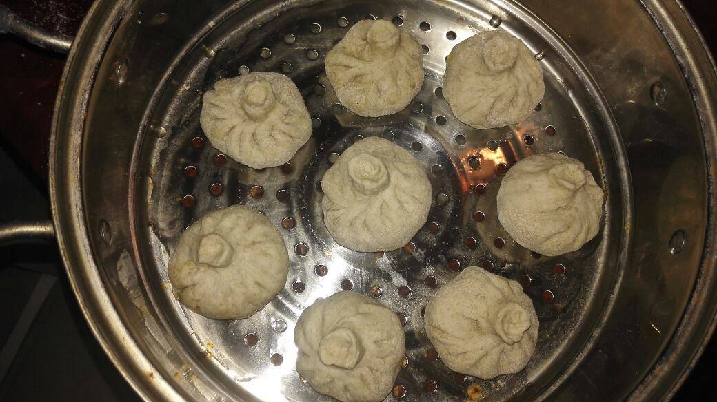昨天晚上将面发上,面粉是邮购俄罗斯的,质量蛮好的,又放了酸奶,发酵母;馅是五花肉,香菇,大葱,虾皮,肉皮熬成的汁,姜,黄酒,放到冰箱冷藏收汁,今天早晨面发好了,面是用面包机揉面的,蒸帘上抹上食用油,蒸好,太好吃了!