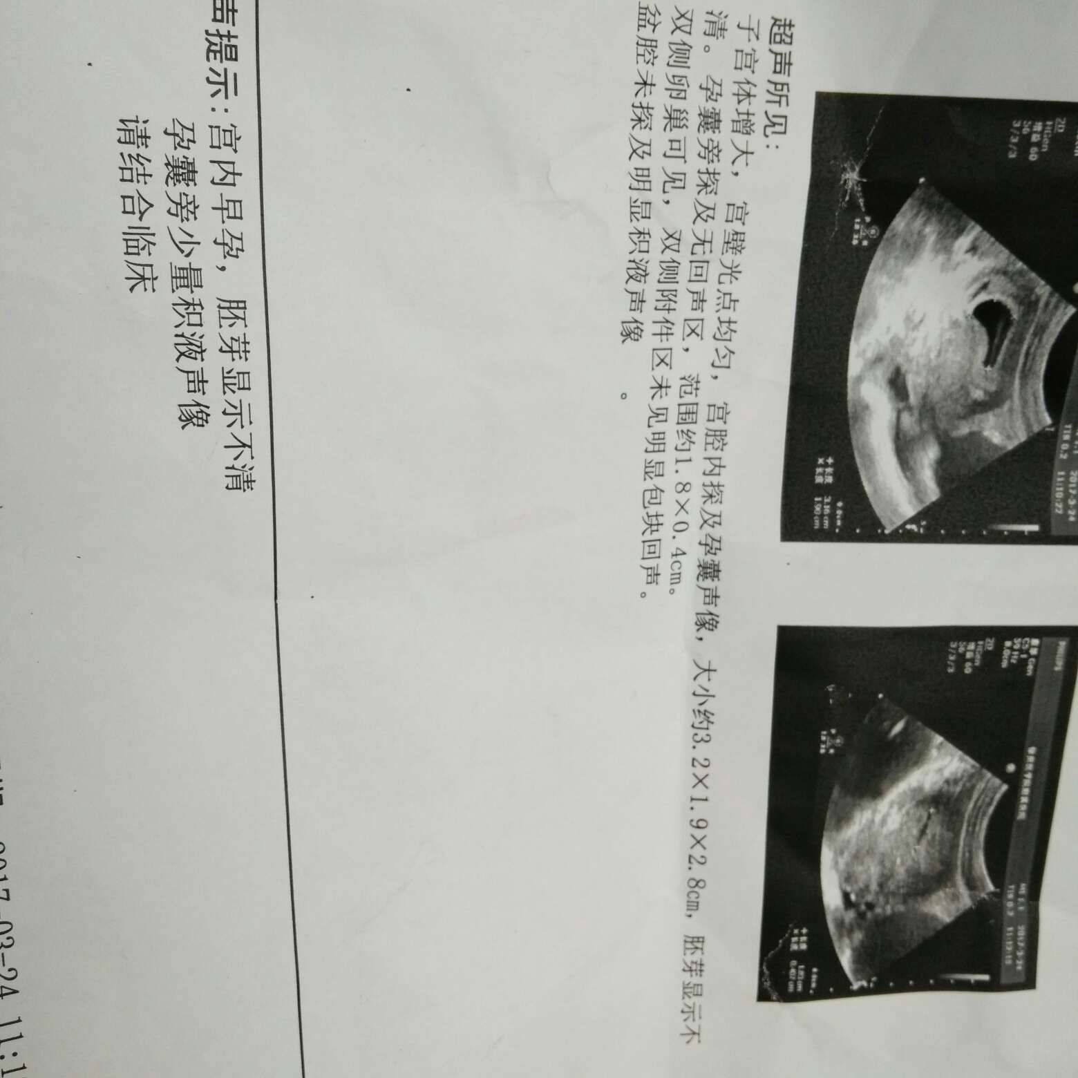 孕囊大小跟你妊娠天数相符。如果胚胎发育正常B超下看胎心跳动就很强、现在看连胚芽都沒有、也就沒有观察几天的价值、还是做人流手术吧。但你也不要太担心、现在不育症太多了、以前就沒有这么多、一方面是自身原因、另一方面也与环境污染、吃的化肥、农药有关。我也看有关这方面的报导。以后备孕等病情控制后再要、但不要太紧张、否则月经也可出现不己