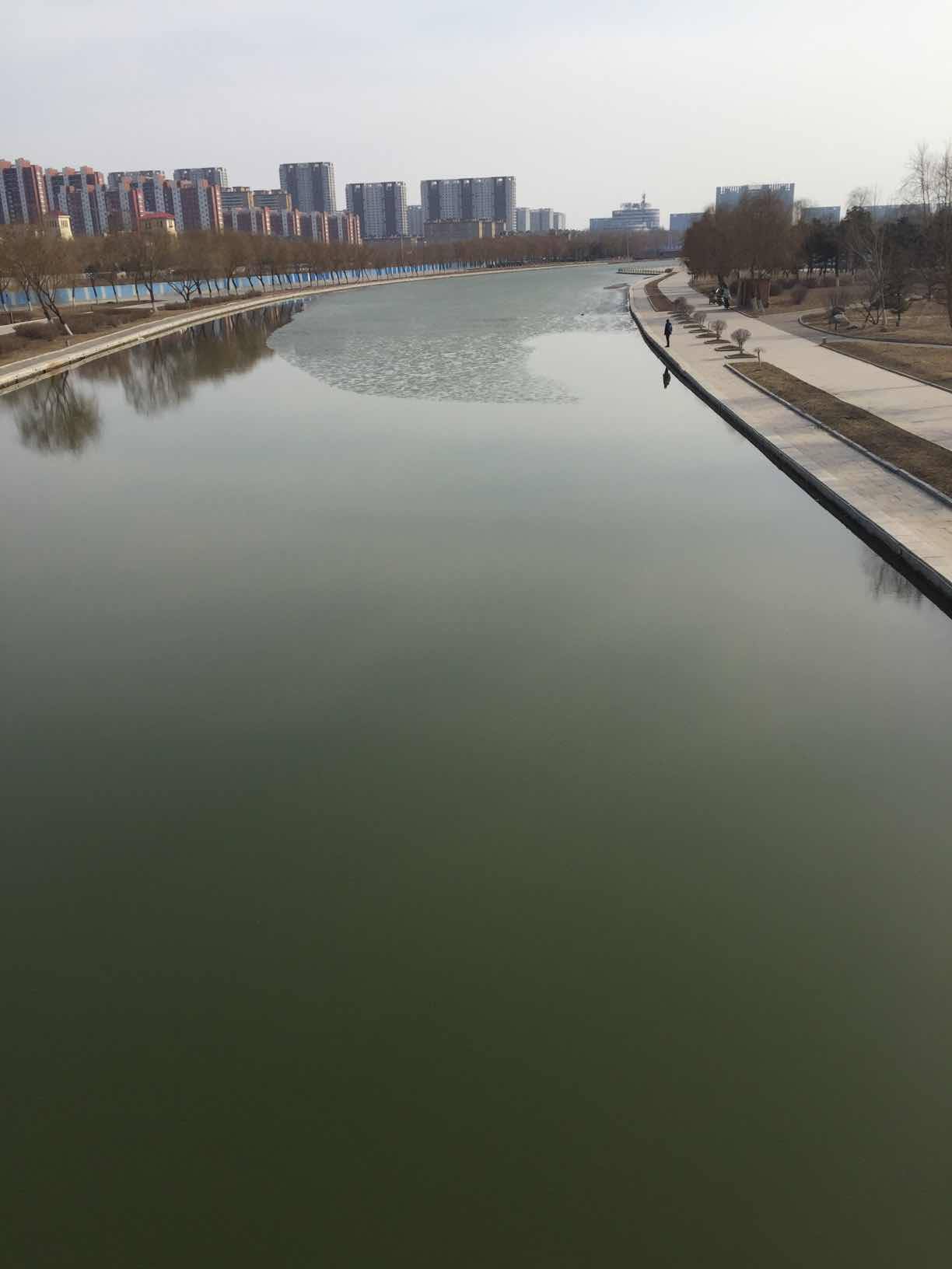 今天行走在桥上时,看河水逐渐融化、一半是河水一半是冰层、倒映柳树,心中淡然、春天在这里!