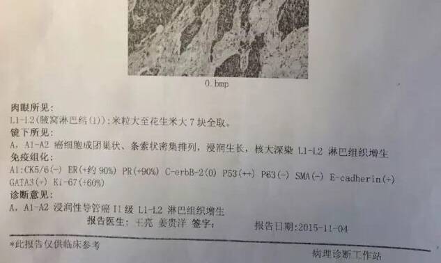 不对啊,你这报告日期是2015年11月4号?病人到现在没有去治疗吗?