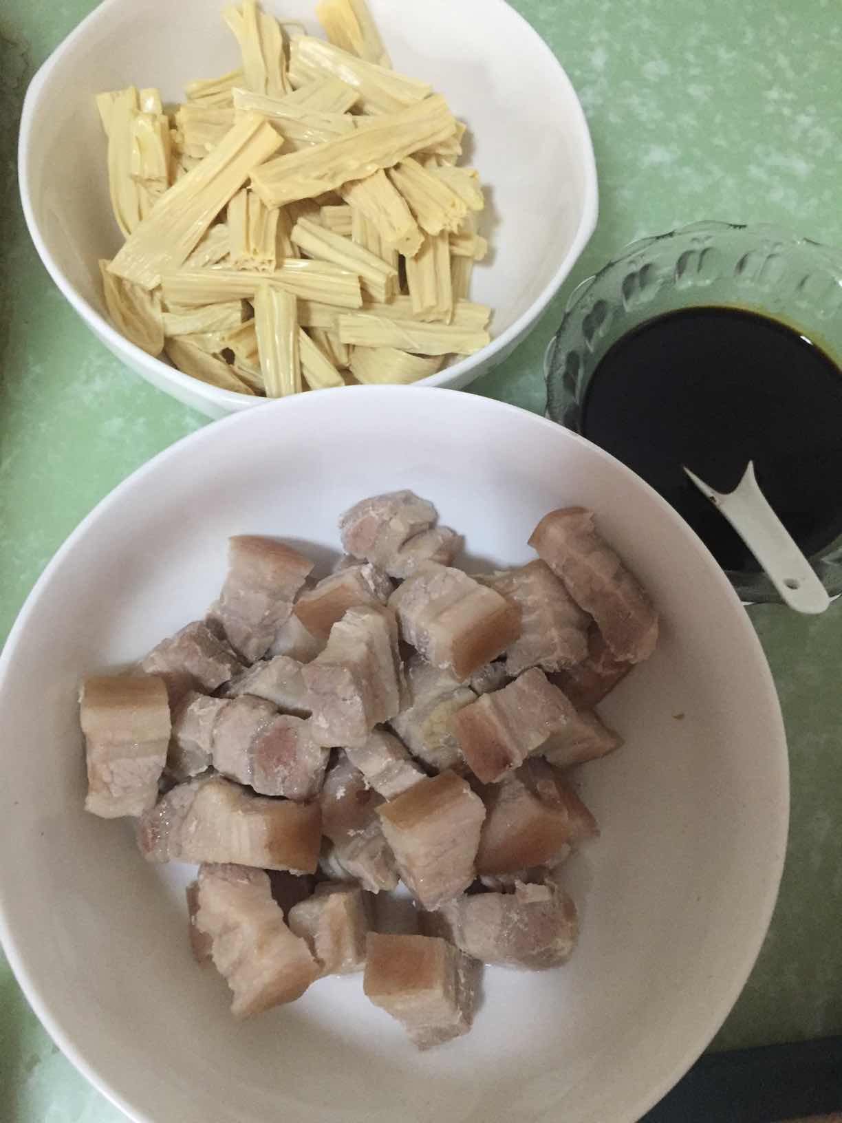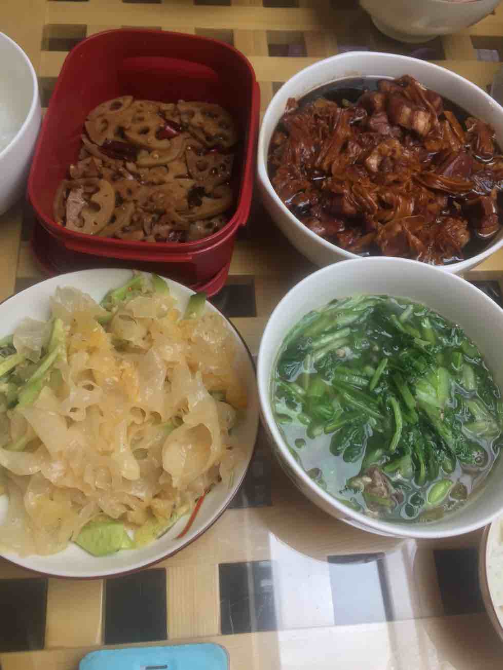 红烧肉不大吃,腐竹可真诱人,还瞧上那藕片了。