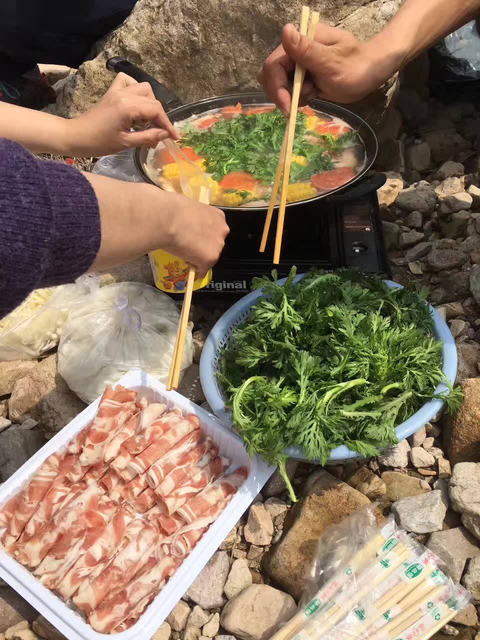 是在小溪边野炊吗?看起来不错哦