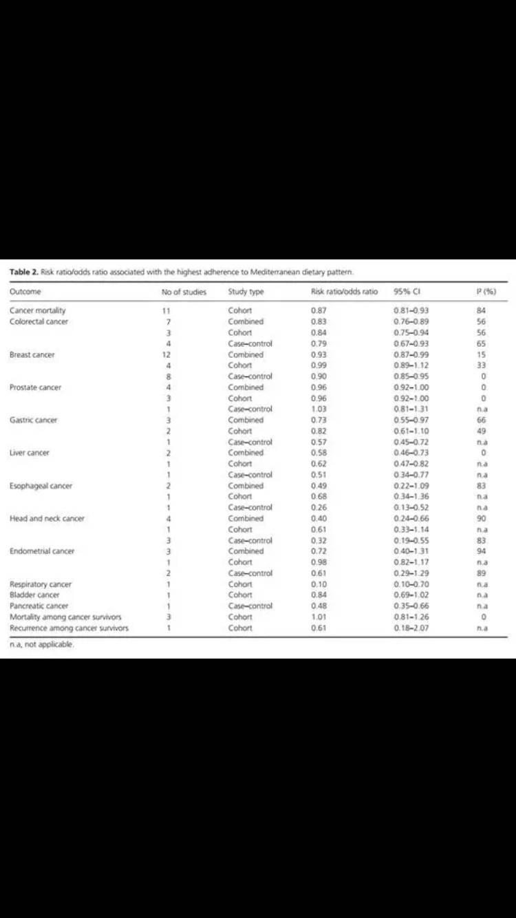 一项包含56个观察性研究、1784404名受试者的系统性回顾和荟萃分析显示了坚持地中海饮食与多种癌症风险之间的负性相关关系[1]。