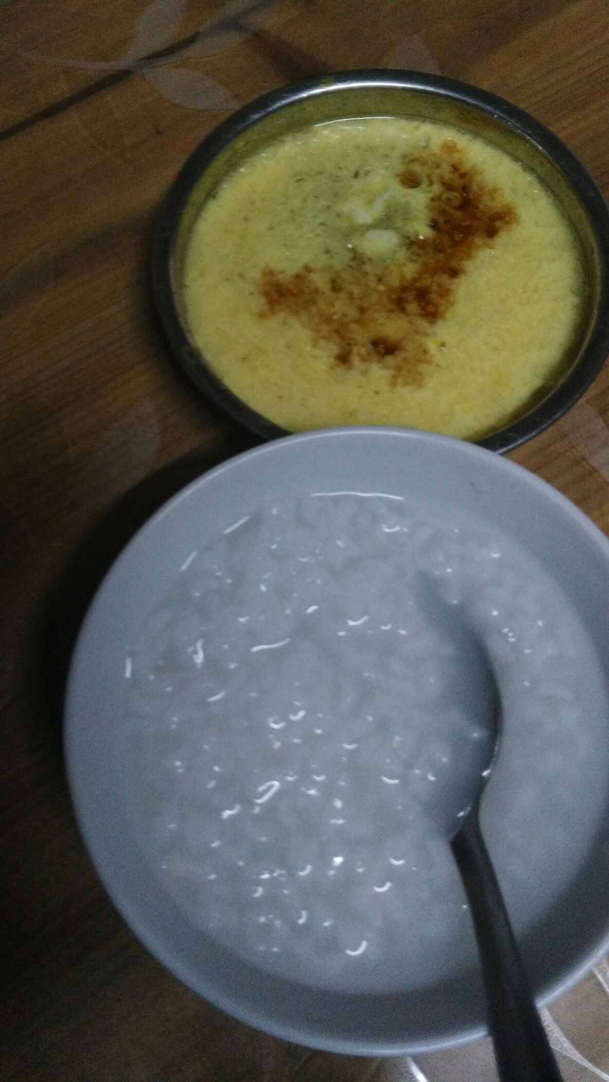 今而个的早餐是半碗稀饭加炖蛋