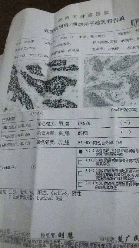 这家医院的病理报告好详尽,不像我看病的那家,只有两行字,搞得我一直不知道分型和分期。