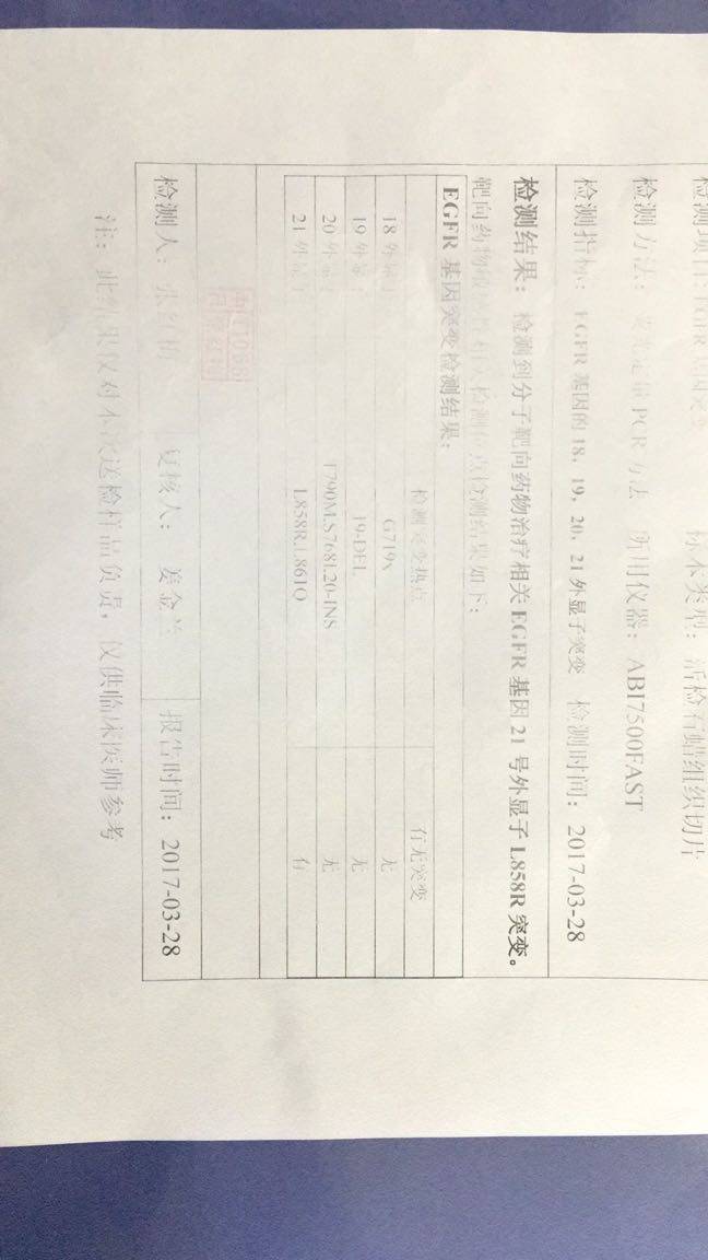 我们今天也做了基因检测。用的去年的病理。不知道能不能突变。肺鳞癌