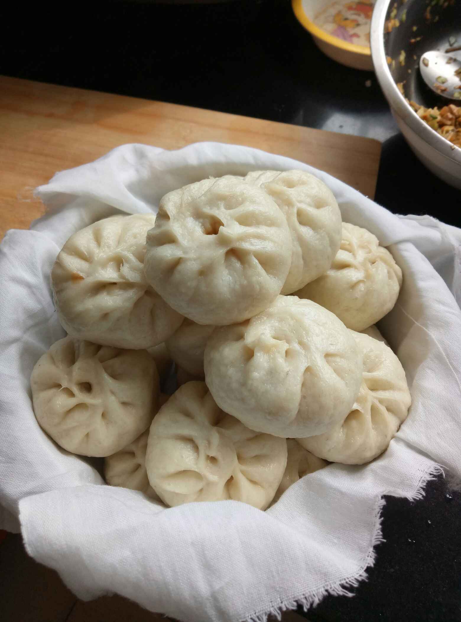 真巧,我也在蒸包子,不过没你蒸的好看
