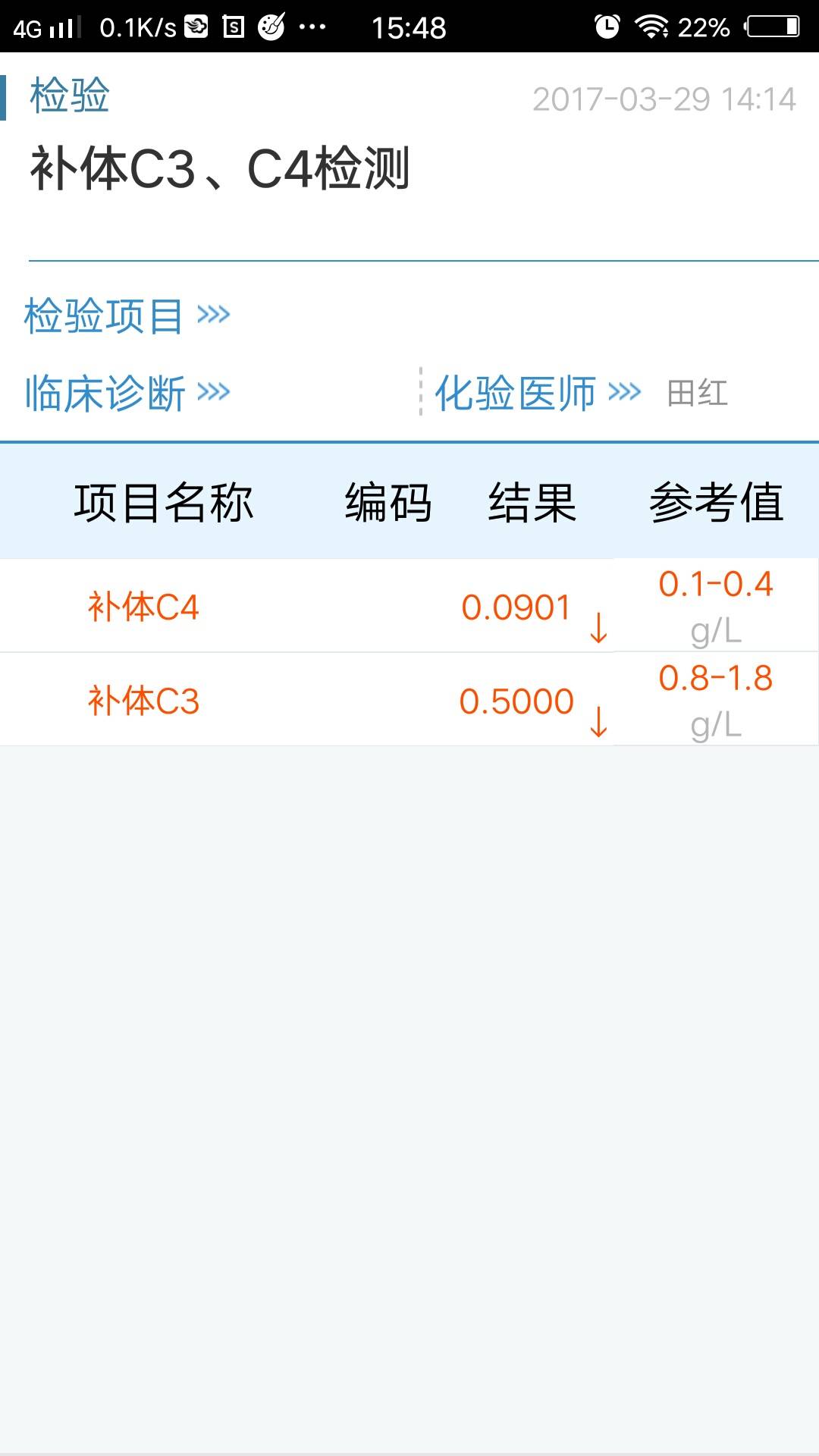 简简单单156补体有点低,红细胞也稍微高点,其他都还好!