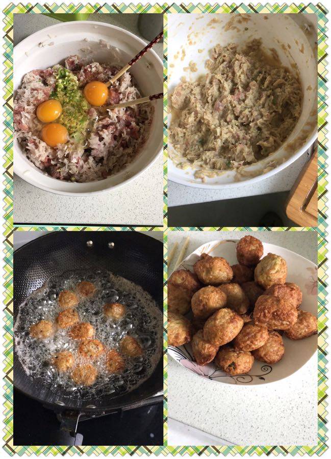 油炸藕丸,香香的好吃,只是用过的油经过高温了,倒掉可惜,炒菜又说不健康,郁闷的,记得我们小时候在农村缺油,哪里考虑那些,都当宝贝继续吃