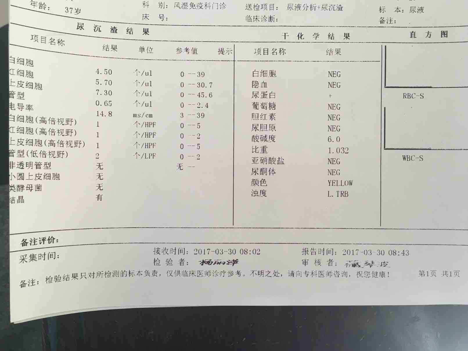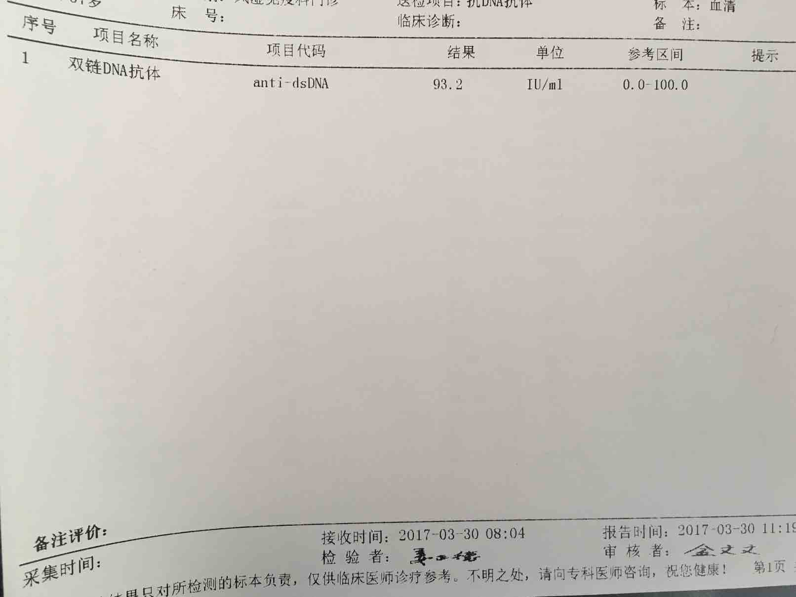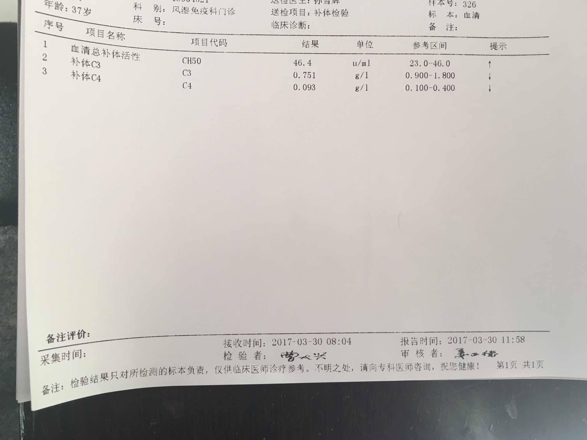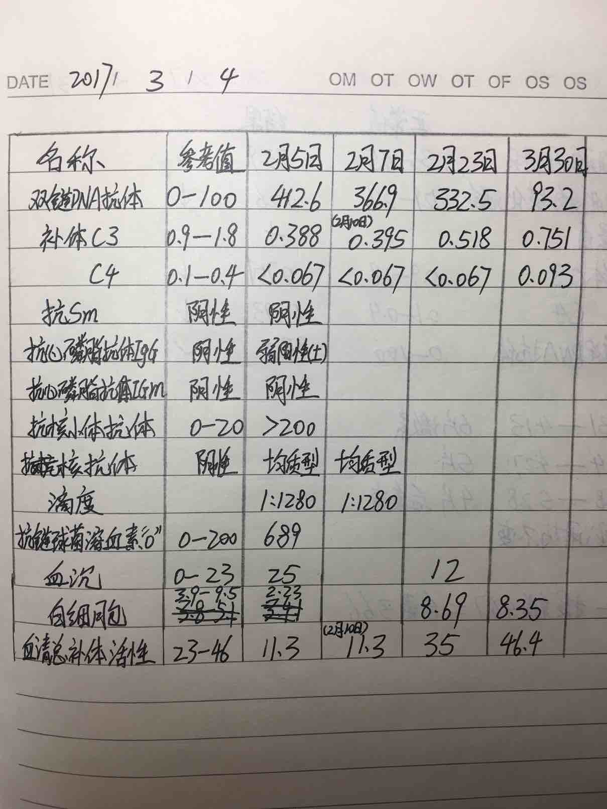 昨天医院复查,怀着忐忑的心情,因为这一个月家里发生了太多意外的事情,身心俱疲,一直担心化验结果不理想,可是太出乎意料,双链DNA已经正常值,C3C4都有升高,其它的只有红细胞压积和超氧化物歧化酶偏低。唯一担忧的是出现了一个尿蛋白 。