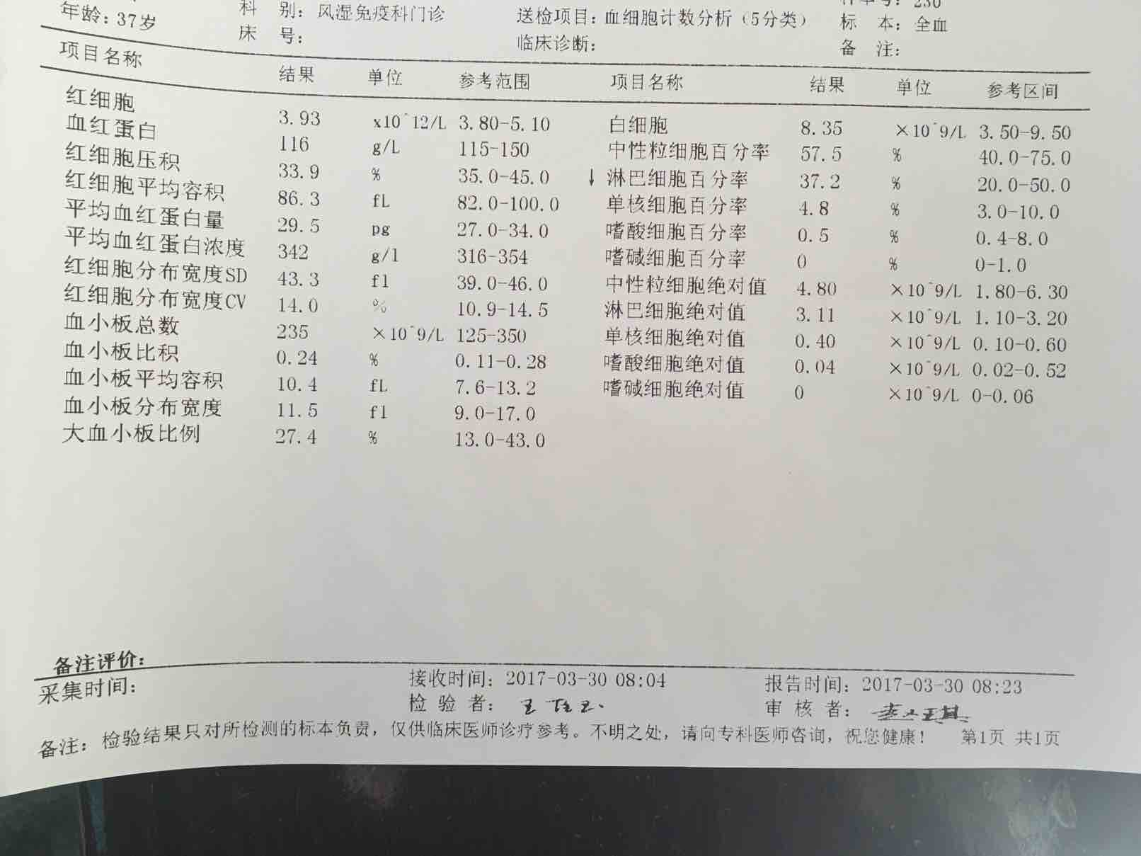 哇,化验单好好哦😄,我的化验单就不好了