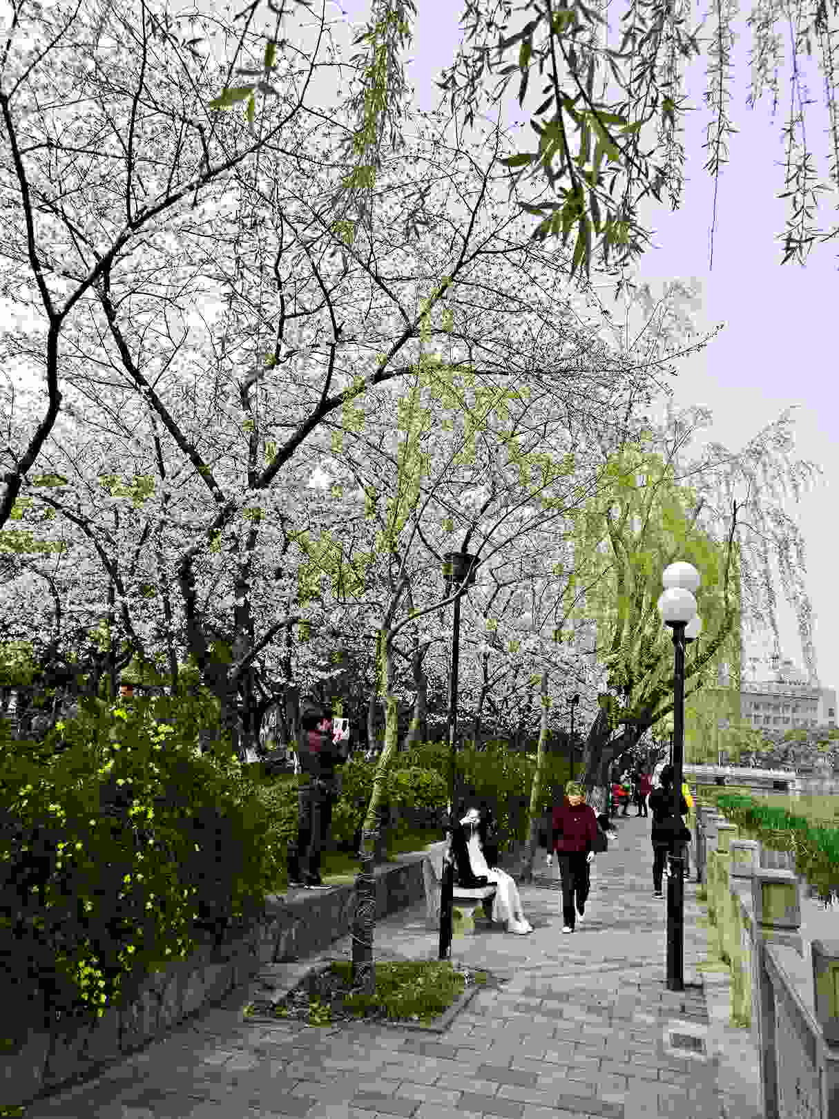 午睡后去海曙公园赏樱花,公园不大,樱花可不少。后悔没带单反,只能手机随手拍。公园好热闹,樱花🌸树下有下着围棋的,也有玩着扑克的,还有打麻将的 ,吃水果晒太阳的,