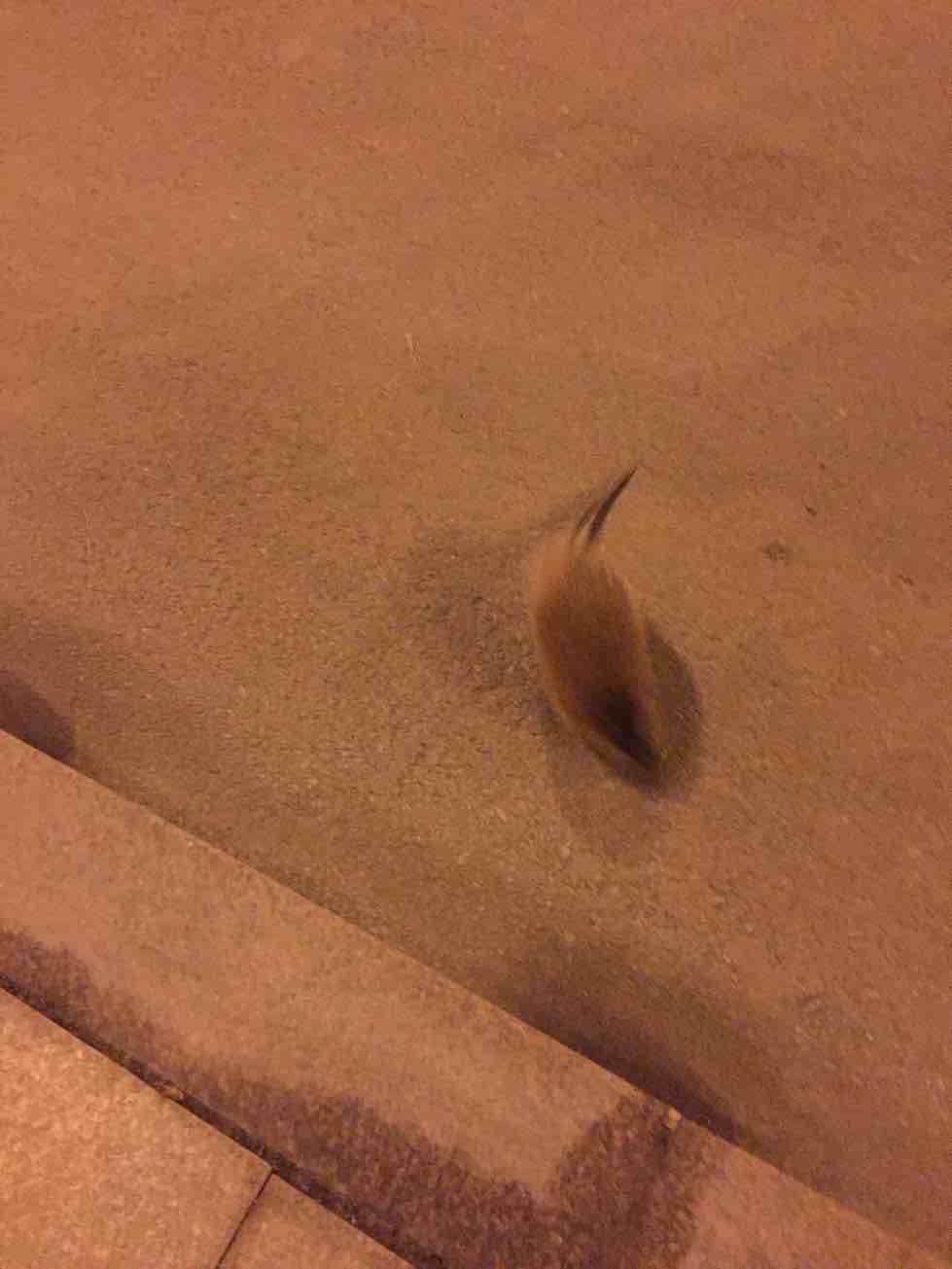 对了、走到桥上时看到一只河鼠、好大呀、肨胖的身子、行动比普通老鼠缓慢、几个人爱怜地看着、生怕被汽车碾压。走远了听到欢呼、回头看那几人趴在桥栏杆上往下看、想是河鼠回到水里了、那才是它的家呀!