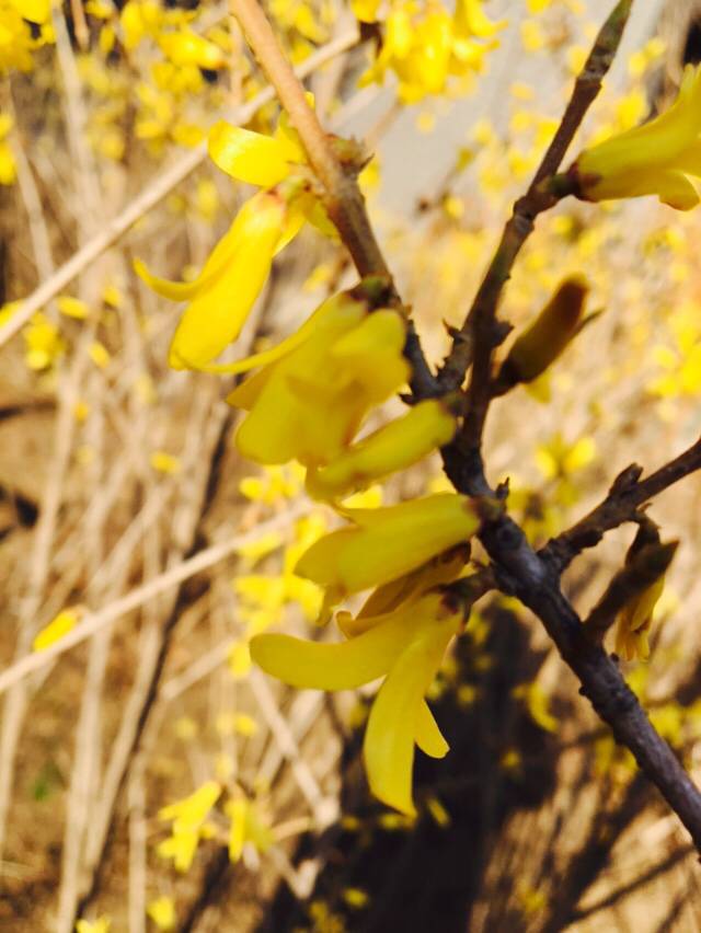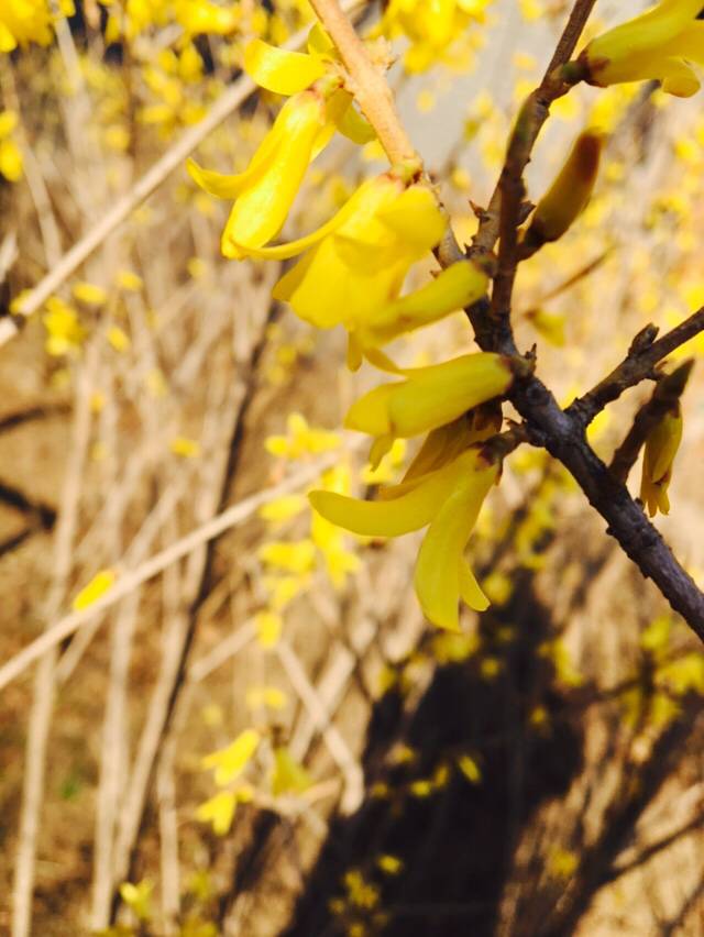 黄色的好像是连翘,迎春是五个花瓣