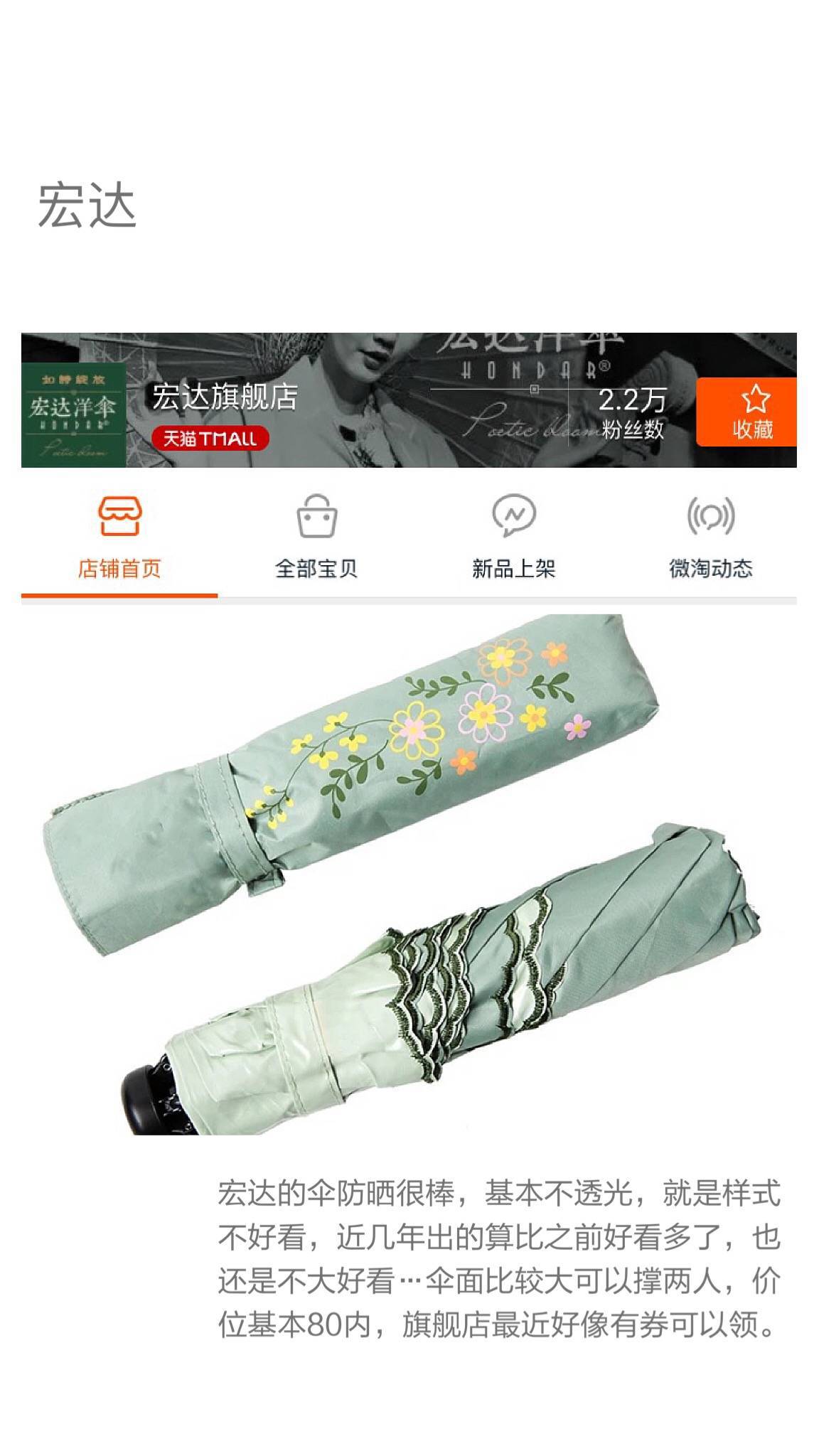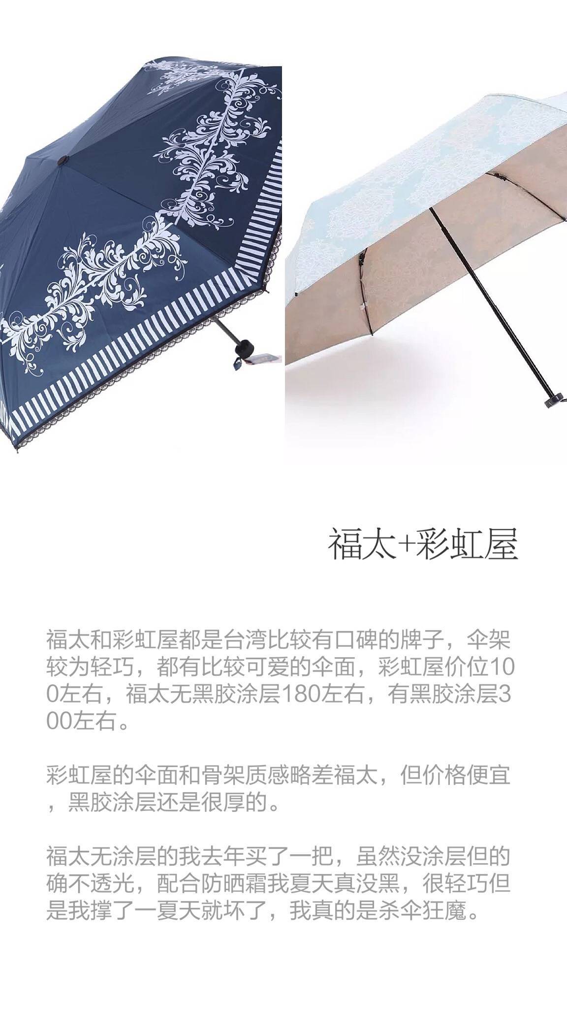 2、彩虹屋(台湾老牌,有一些款式采用的比较出名的福懋伞布,算是防晒布料非常好的了,选的时候尽量选这个布料的伞)