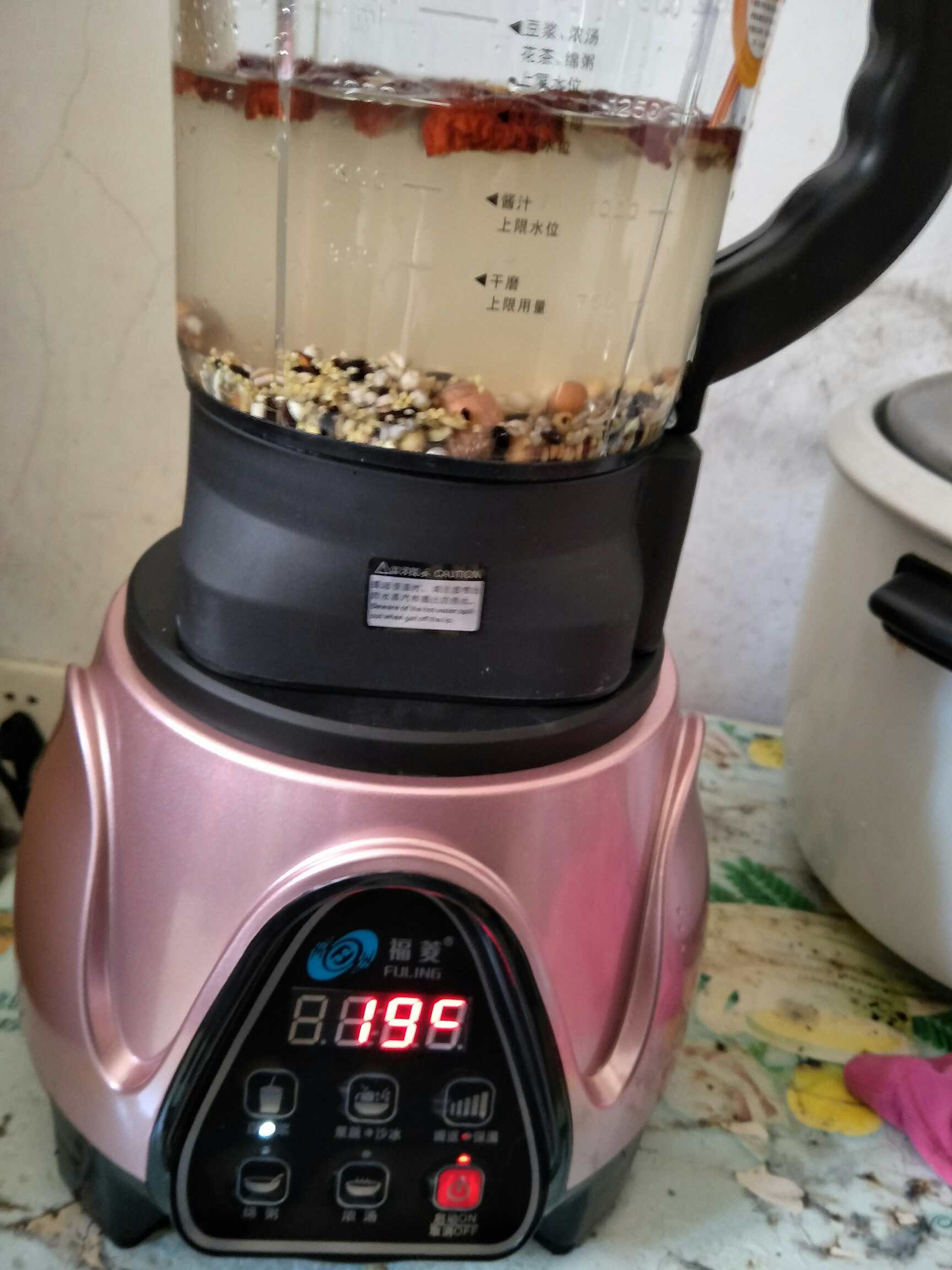 今天打了米糊喝,前几天重新买了个豆浆机,买了个多功能的,破壁机,煲粥,煲汤都可以😄,神了!!
