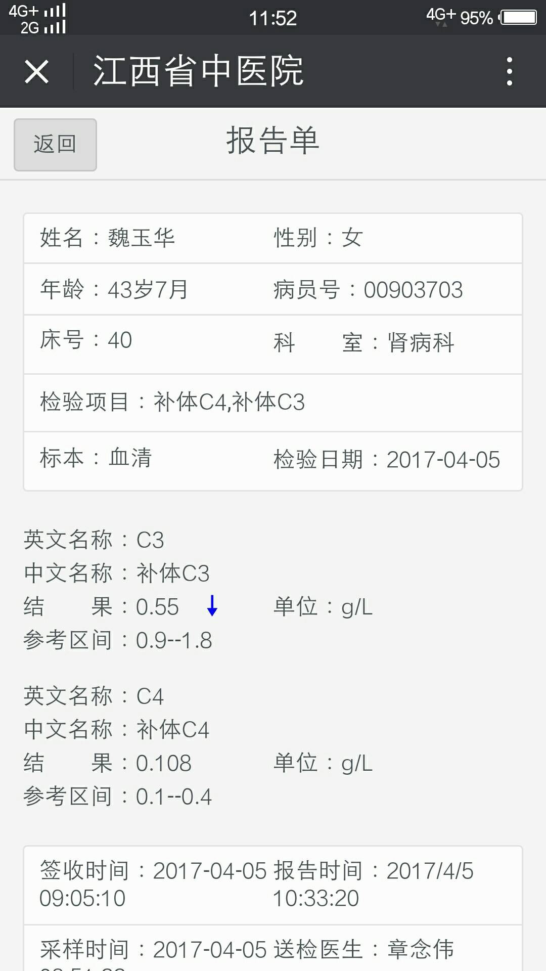 C3稍低……其他的全部正常!很不错的检查结果!减药没有?