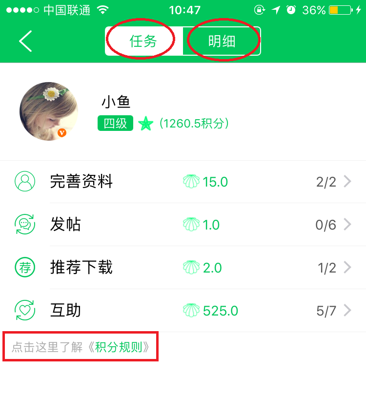 1、点击个人首页,查看积分。可点击查看积分详情: