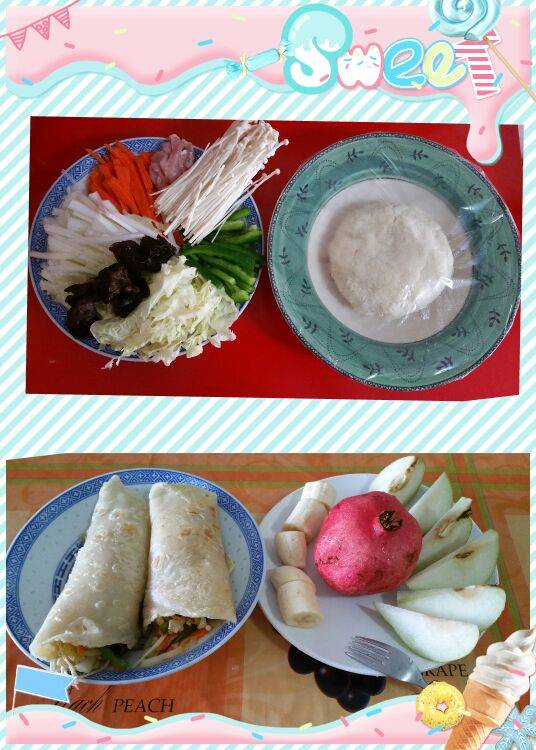 昨天的春饼做得很成功☺~今天上午公园走了一小时回来还想吃春饼...(这里借用一句我妈经常"夸"我的话:不知道吃哪儿口上膘)😂🙊...配菜换成了瘦肉丝,白菜,木耳,胡萝卜,青椒,金针菇...好吃好吃😍