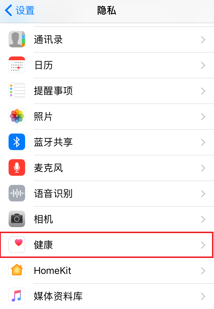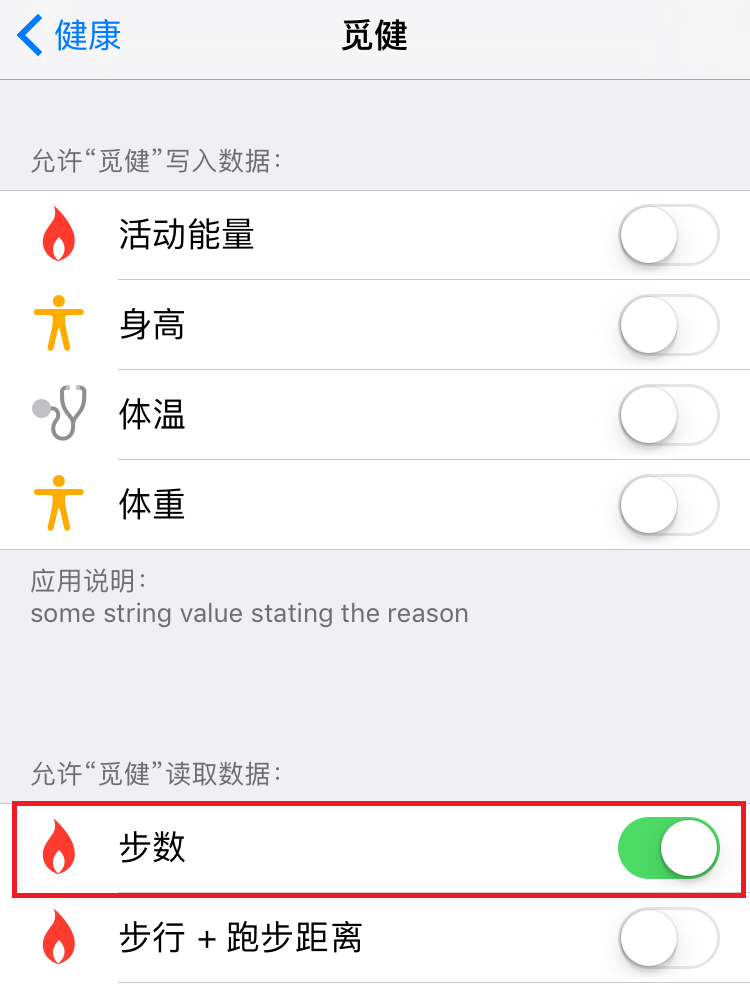 苹果用点可点击上图红色框内的步数获取授权,如果被设置成不允许的情况下,就按照以下步骤获取授权。