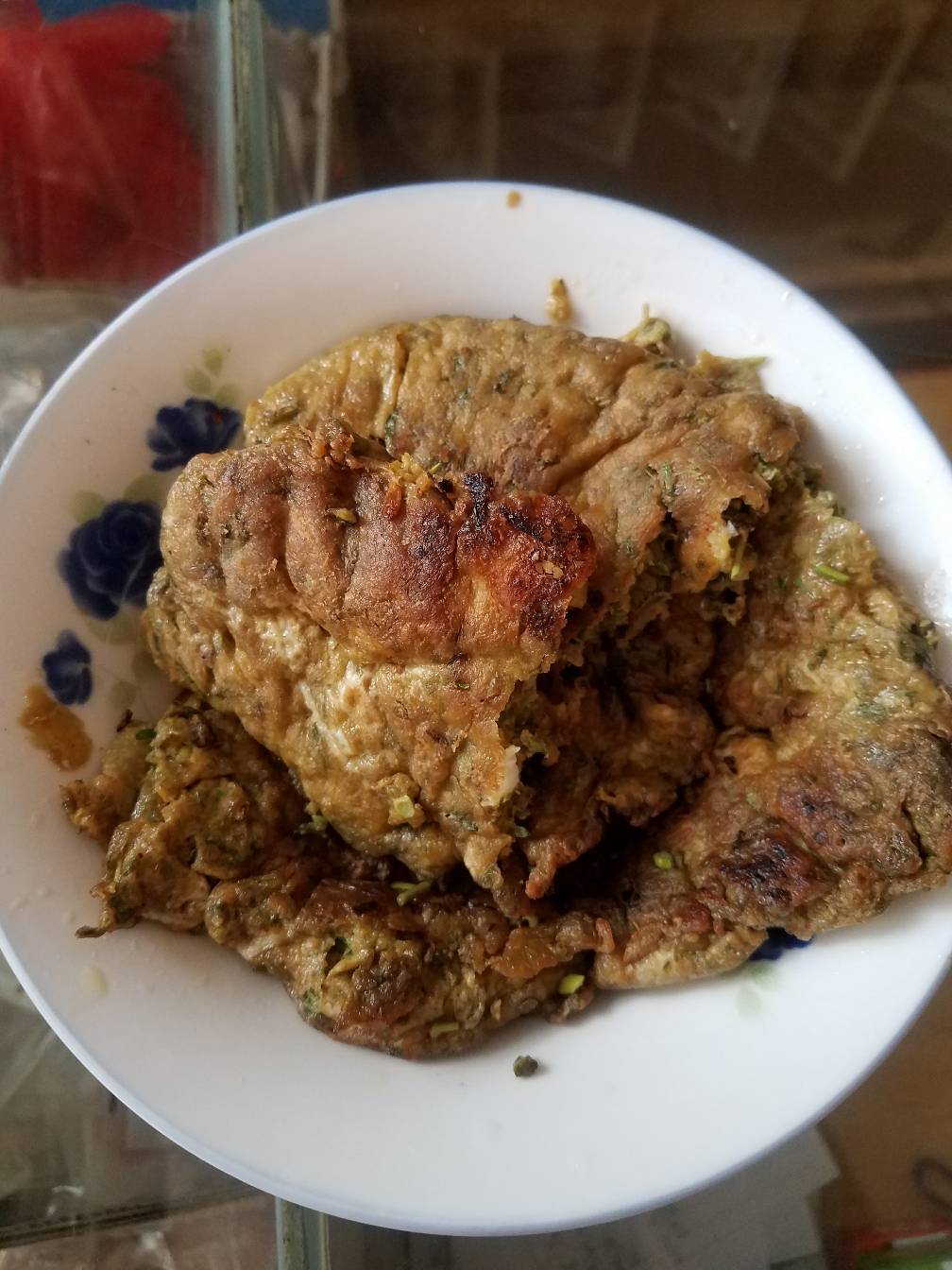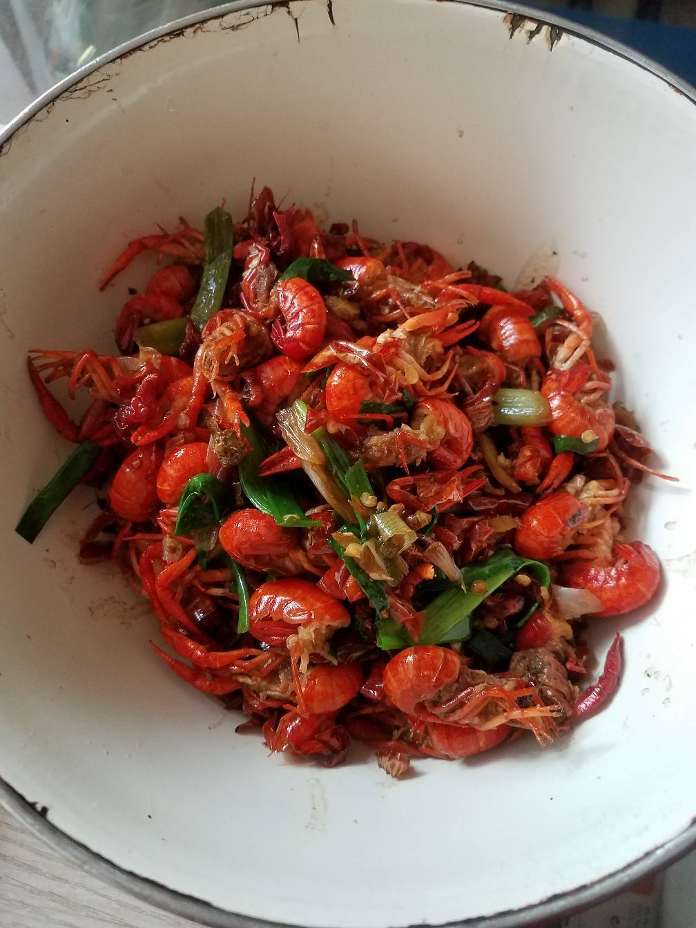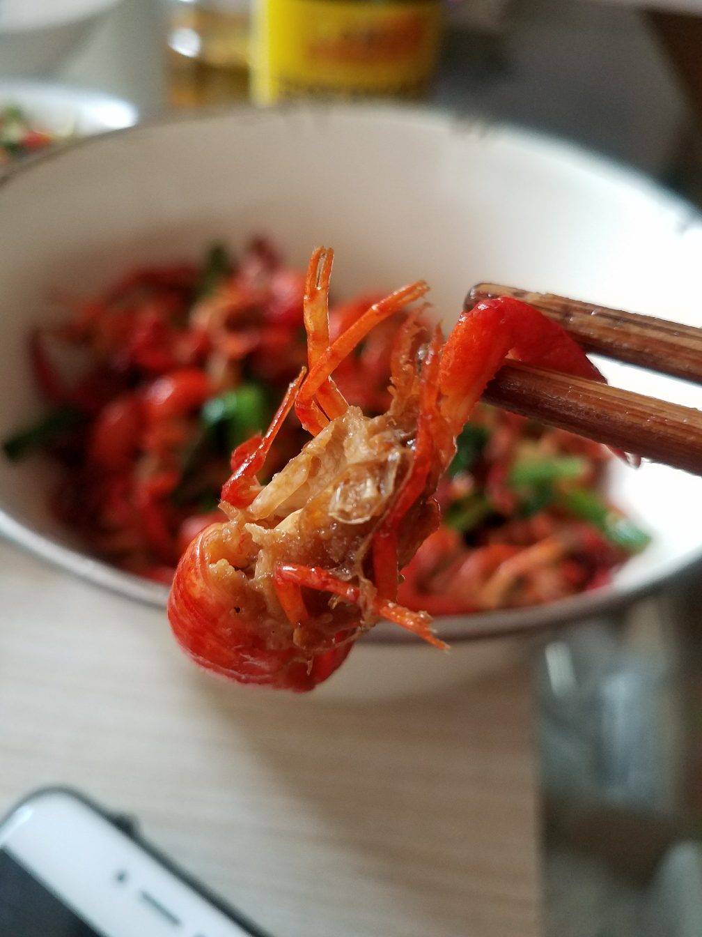 今天她做的菜很不错,有:椿煎蛋,五花肉炒笋,她自己家腌的菜,还有她弟弟给她的虾,她说是自己乡下捞带来的。我忍不住吃了几个,因为太好吃了