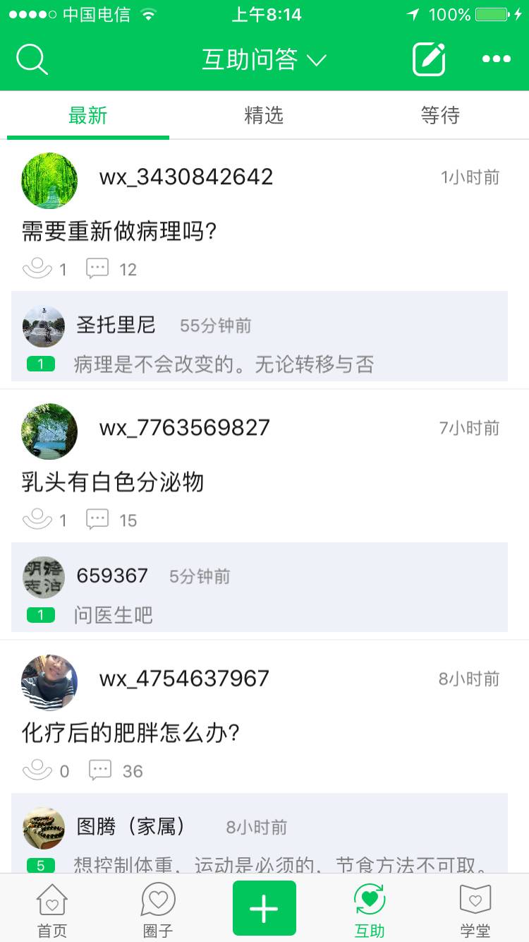 最后我说一下我的观点,这是一个平台,让姐妹们相互交流相互扶持给予安慰鼓励的一个平台,遇到高兴的事发个帖子大家分享,不开心了发个帖子倾诉发泄,甚至你今天吃了什么,去哪旅游,和谁吵架,都可以发。至于病情病理,说句实话,我觉得还是和你的主治医生交流比较靠谱!