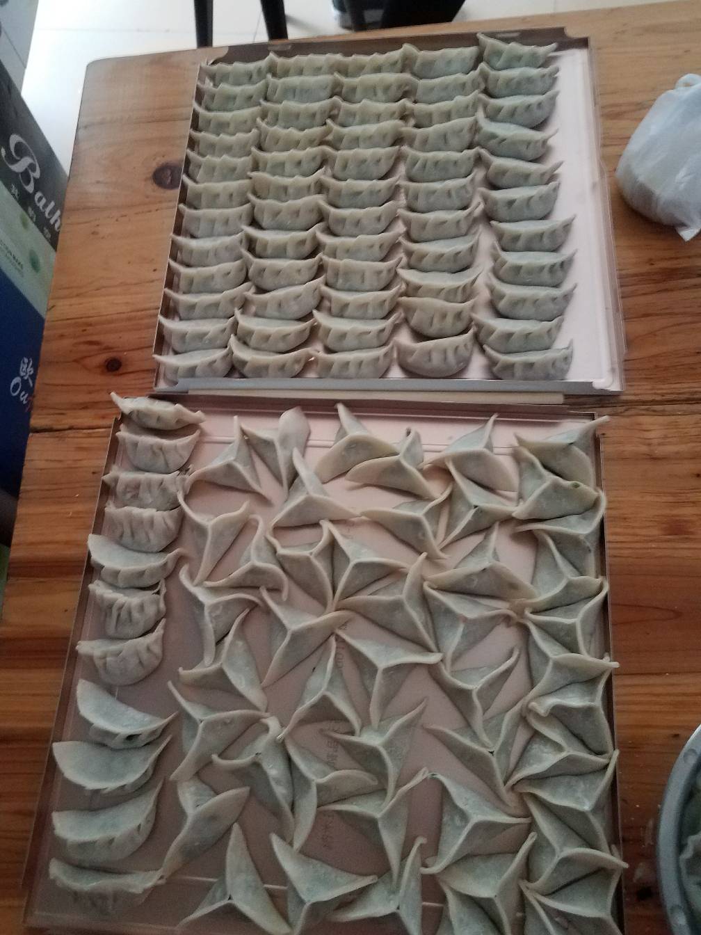 她说她女儿想吃,但她又要带儿子,而且她觉得我包的饺子好看😜😜😜所以她剁好馅了就叫我过来帮包了,包的时候她女儿也一起包了,虽然她包的是三角星饺子,但很好看哦