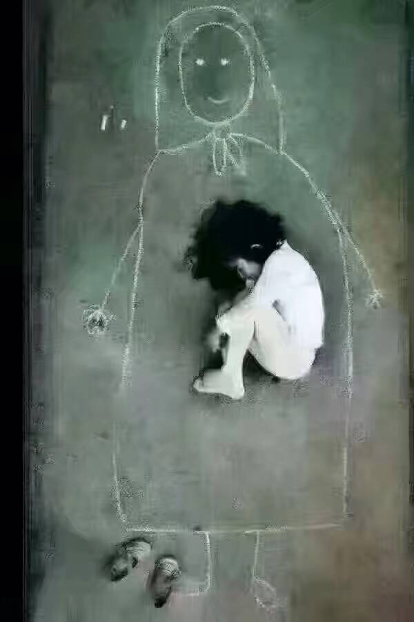 一对父母离婚了,一个没有妈妈的小孩,在水泥地上,画了一个妈妈。