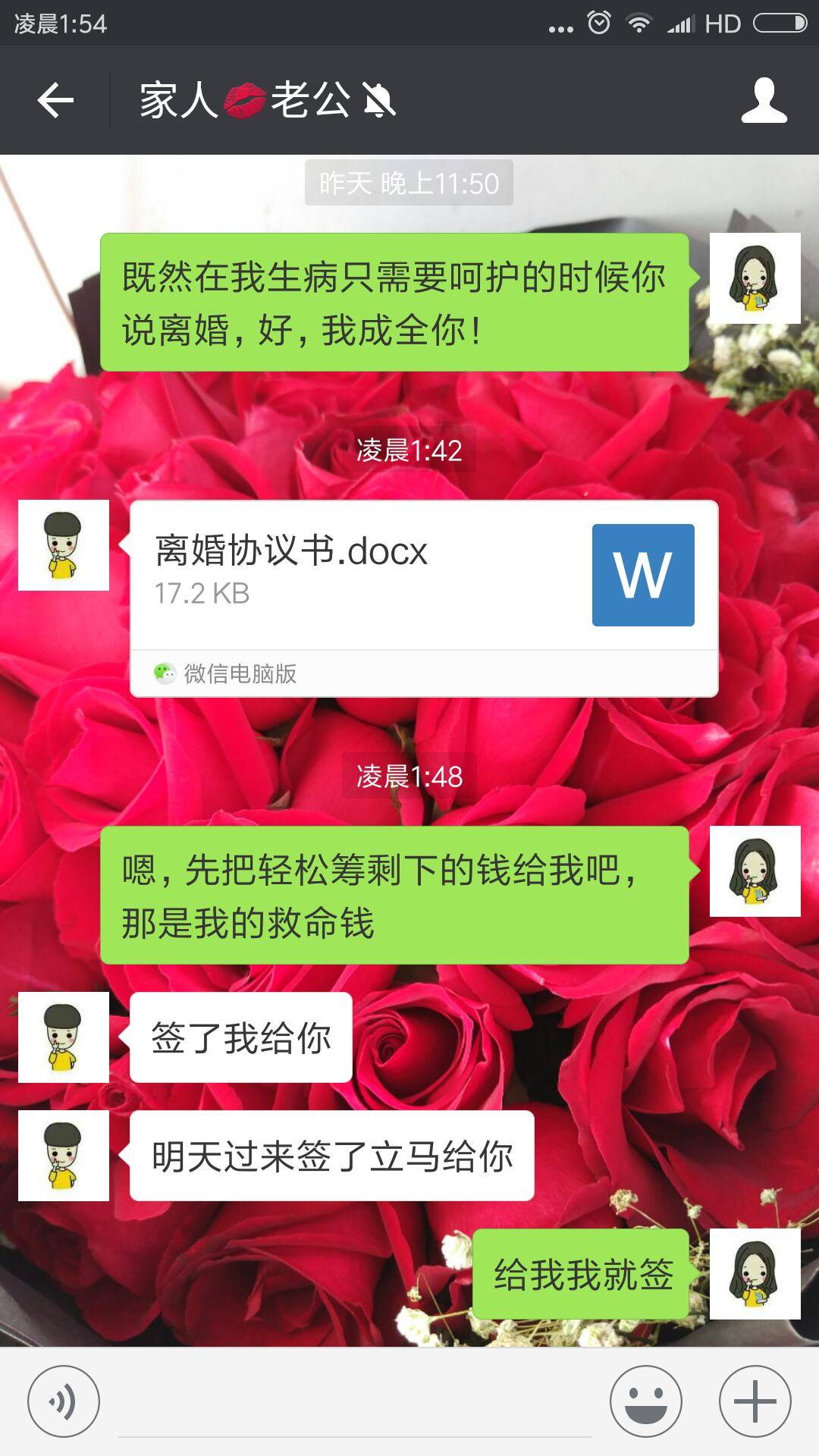 妹妹加油!这样的男人早点离开她吧,不值得留恋了。拿到钱好好养病,要活出自己,为自己的亲人和孩子。其他的不要多想,好好治病好好康复!