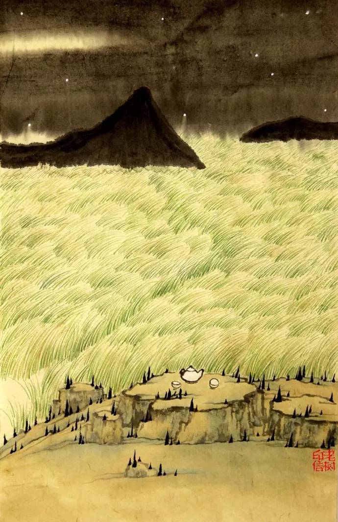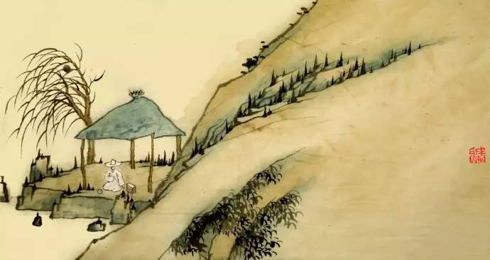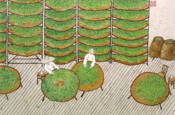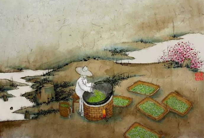 上山采茶,炒茶,品茶。最后一副画最孤寂。