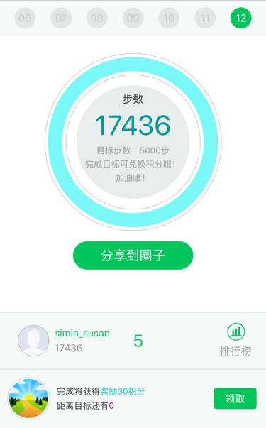 你这有点多,注意休息,每日5千至1万步最好,走多了伤骨头。目标完成不用分享也可直接领积分