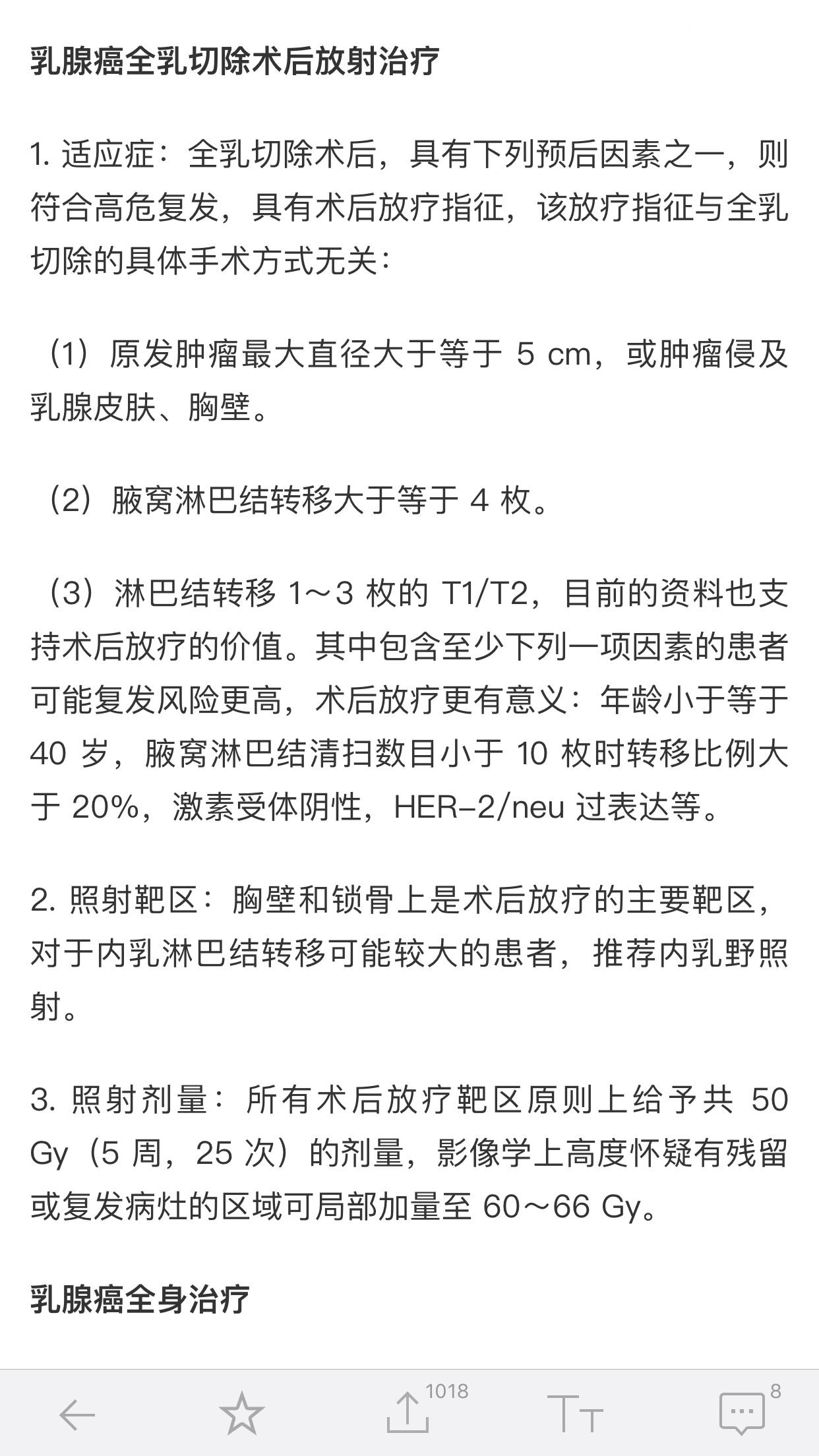 最近姐妹们问了好多放疗的问题,我找到了2015年的乳腺癌的治疗指南,指南是专家们根据国外的权威指南再结合中国现状给出的规范治疗指导建议,便于基层医生规范治疗。现在截屏了放疗的部分,大家可以了解下这方面的知识,听从医生的治疗建议,减少恐慌和纠结。加油姐妹们!