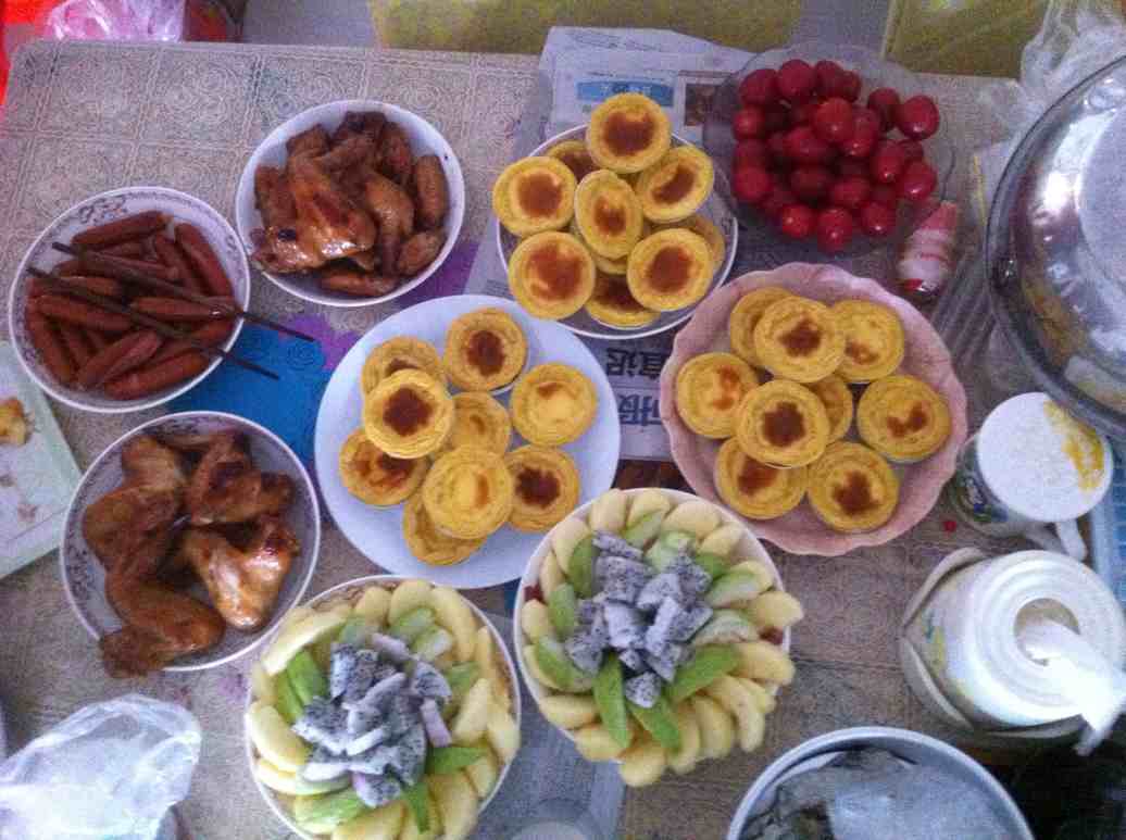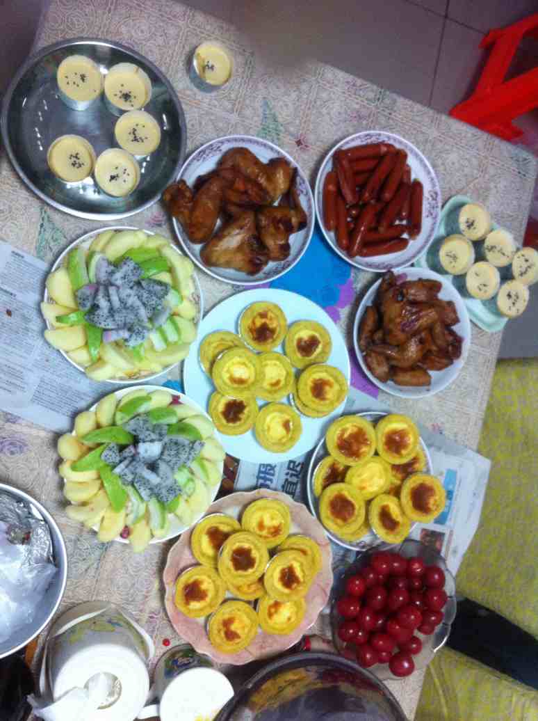 蛋挞,烤鸡翅,水果沙拉