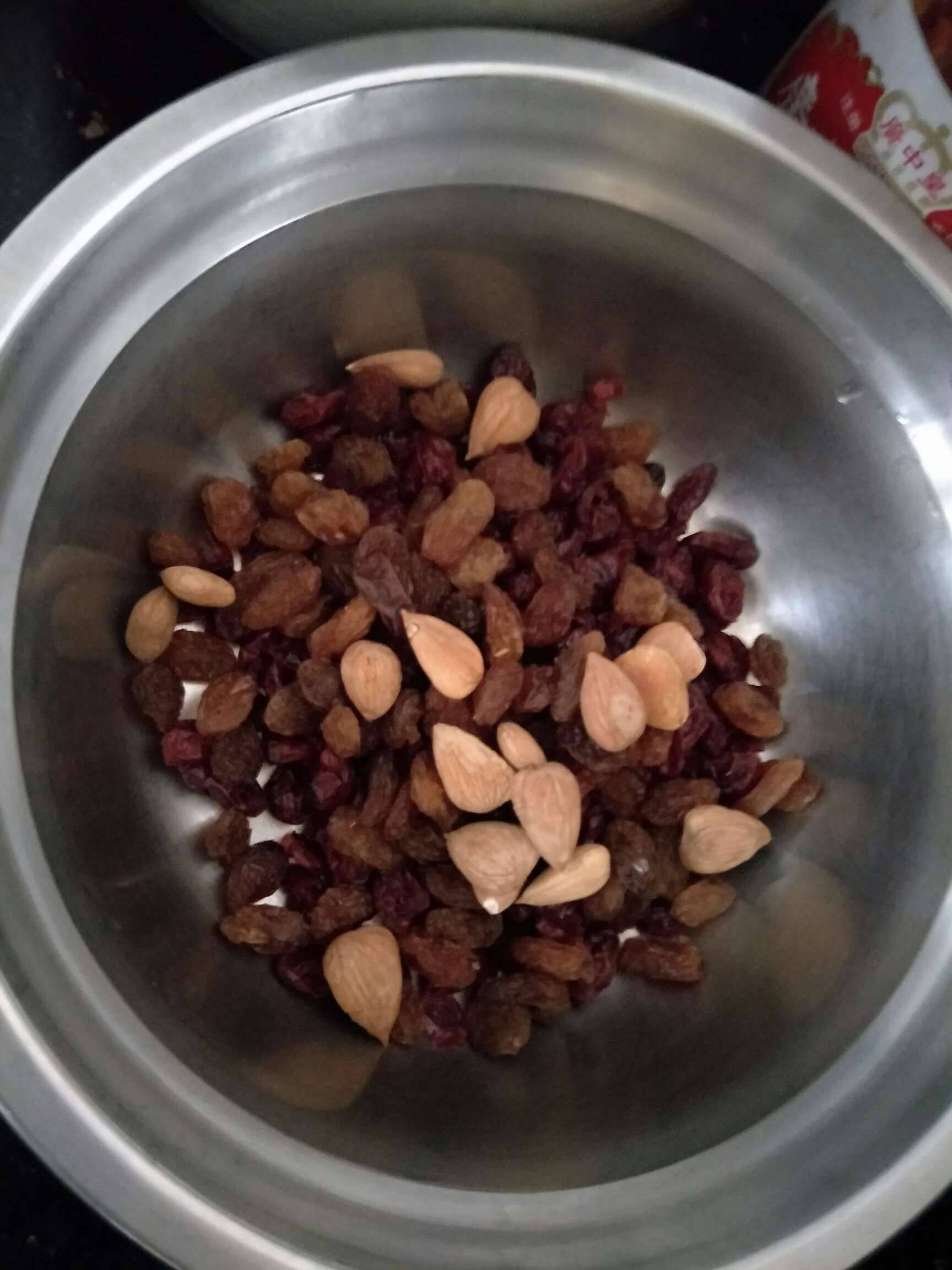 哈喽,今天又做了这个牛乳糖,这次用了提子干,蔓越莓和十几个杏干