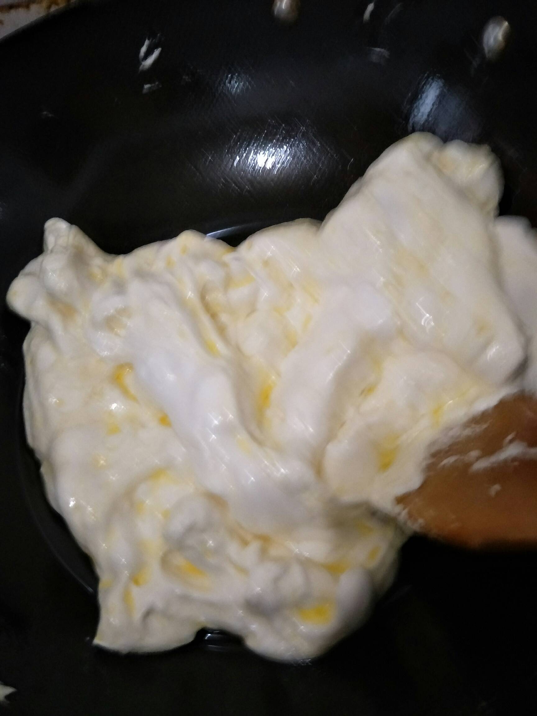 3.慢慢的一点点倒入乳粉,一点点的翻炒,再过一会,我会熄火了,慢慢的一点点倒入乳粉,翻炒至均匀,这样乳粉就不会混在一起了!!