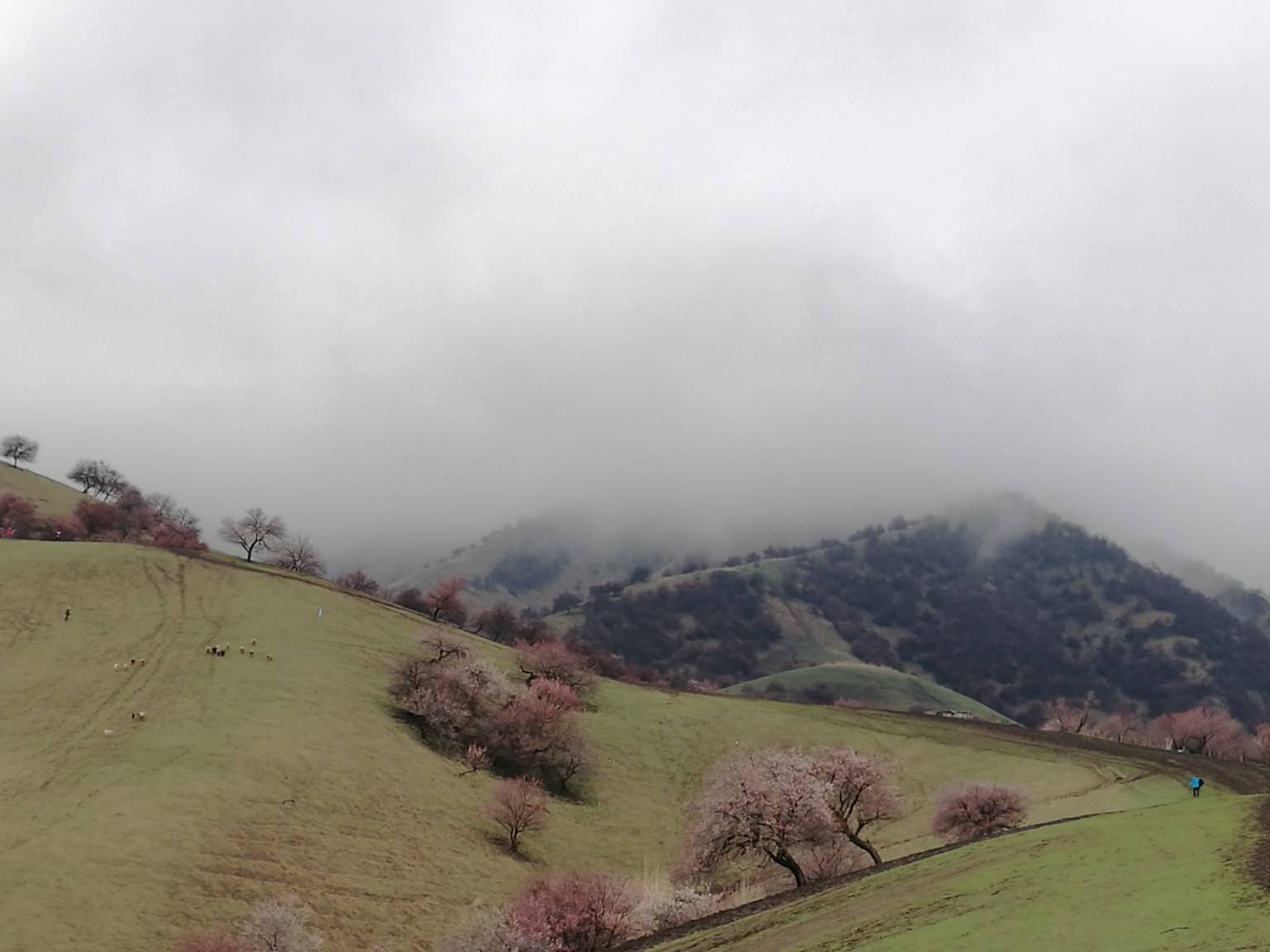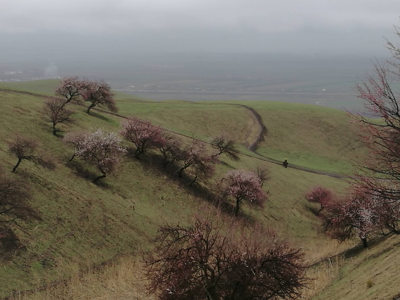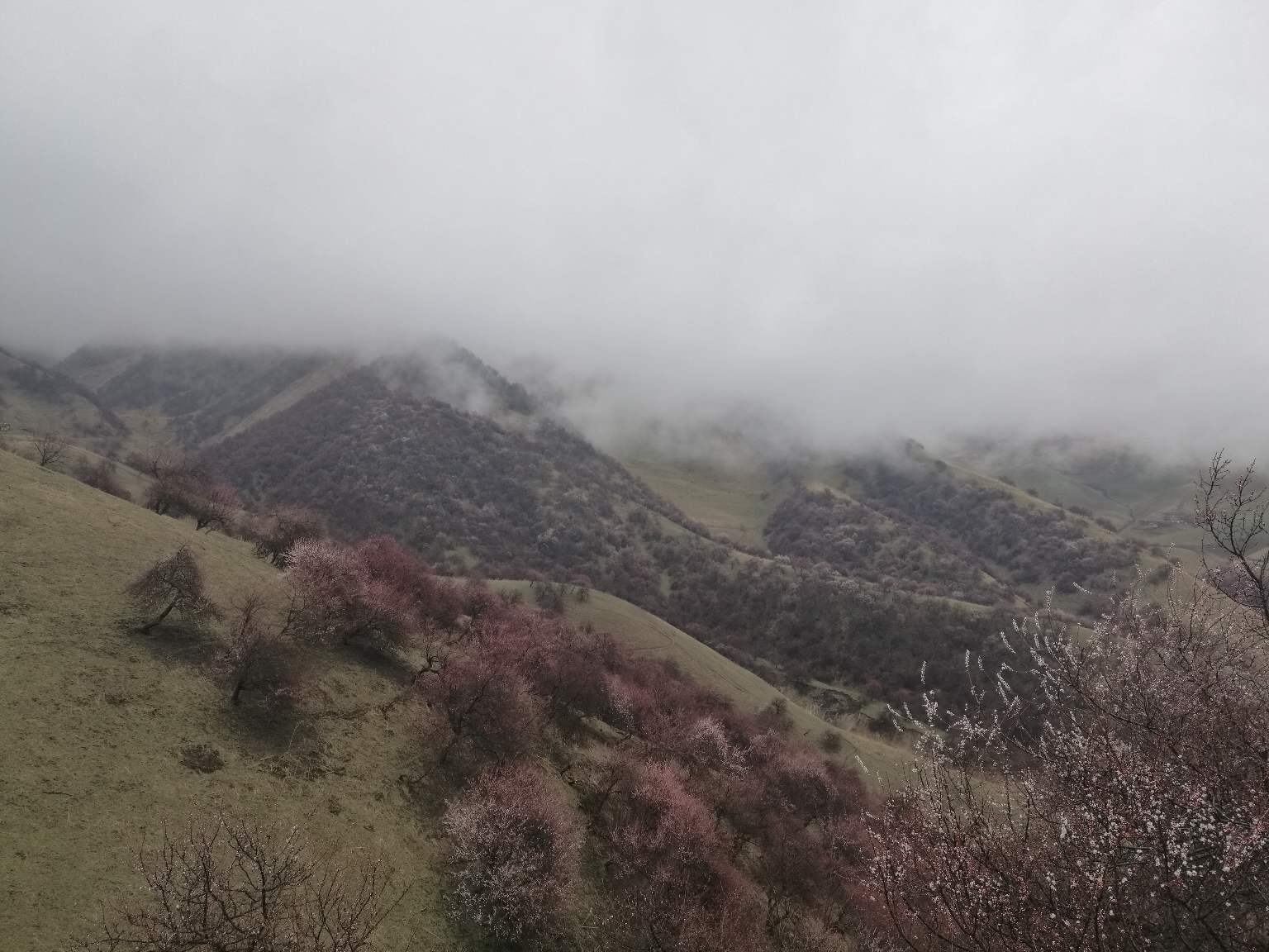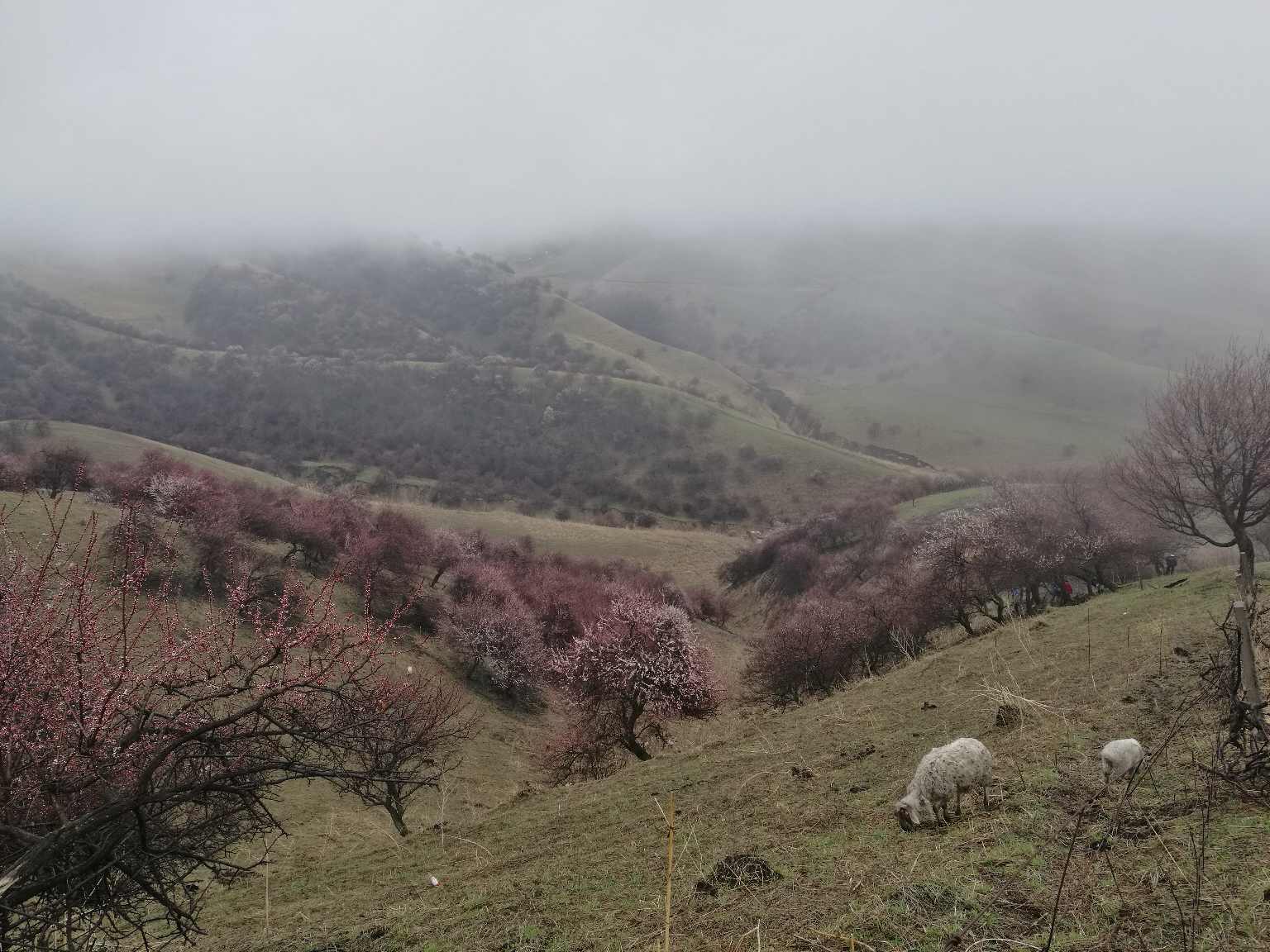 (雨后的杏花沟,杏花含苞欲放,宛若一位娇羞的少女,犹抱琵琶半遮面!)