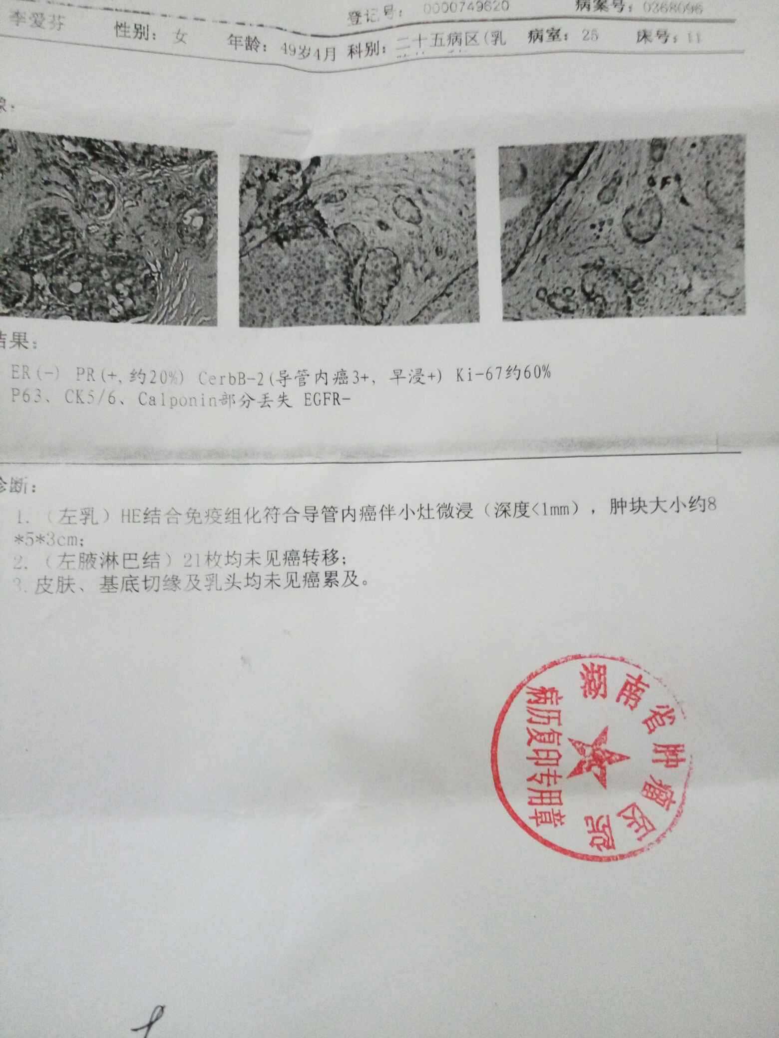 我肿块直径1.5x1.5,活检术后病理都导管内癌,希望你妈妈也是最幸运的一个。