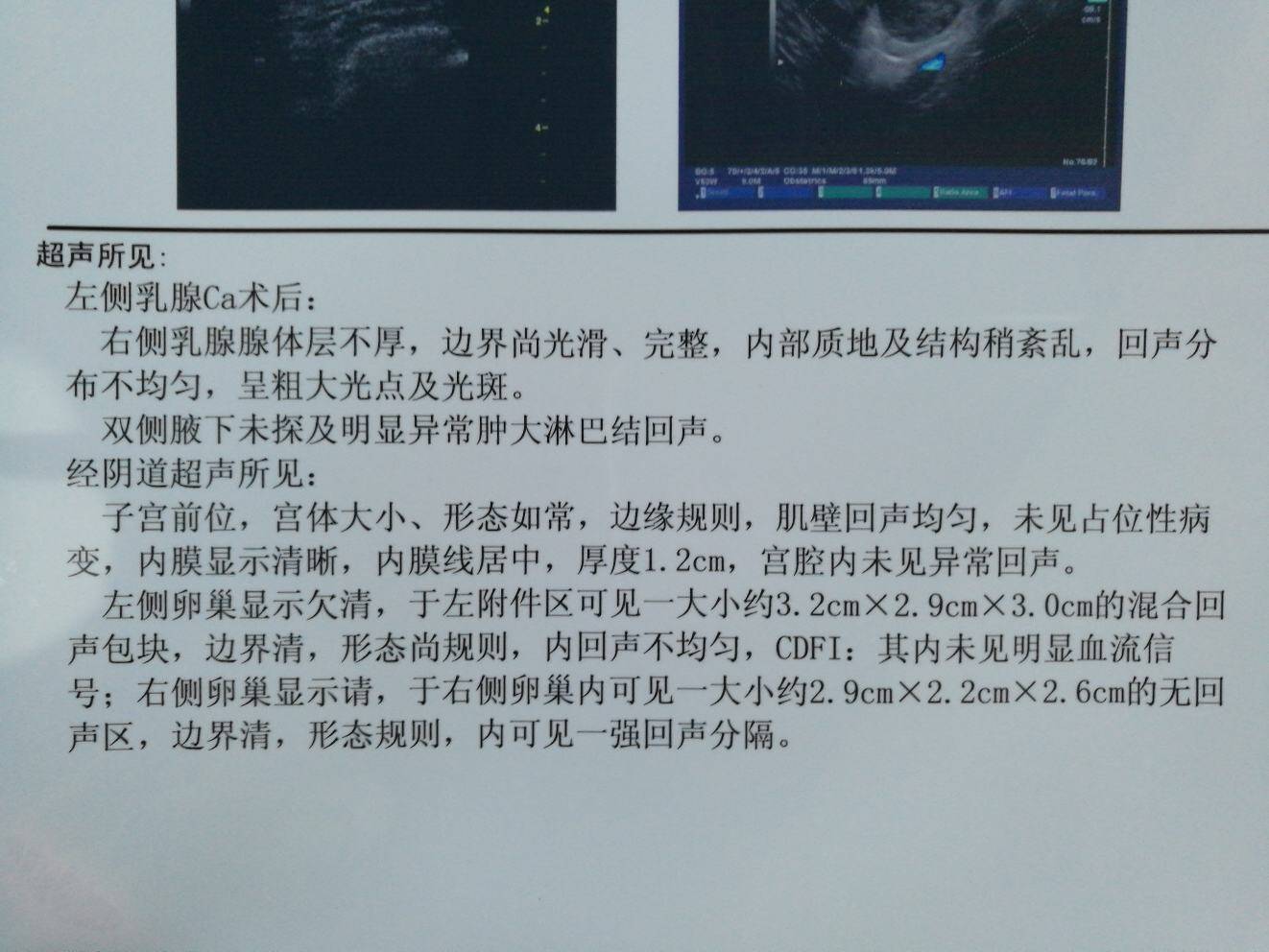 刚做完第八次化疗,之前例假一直正常,这次就一直没来,最近几天左腹老是隐痛,就来做个B超,结果又查出来问题了,明天要去医院做进一步检查,感觉现在手都是抖的,老天爷不会这么厚待我吧。姐妹们有懂这个的吗?给我点好运吧