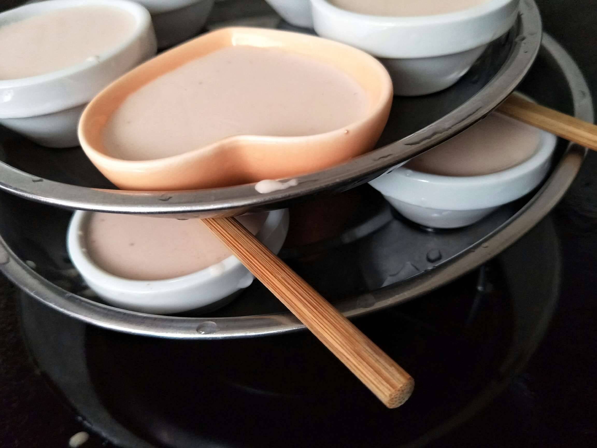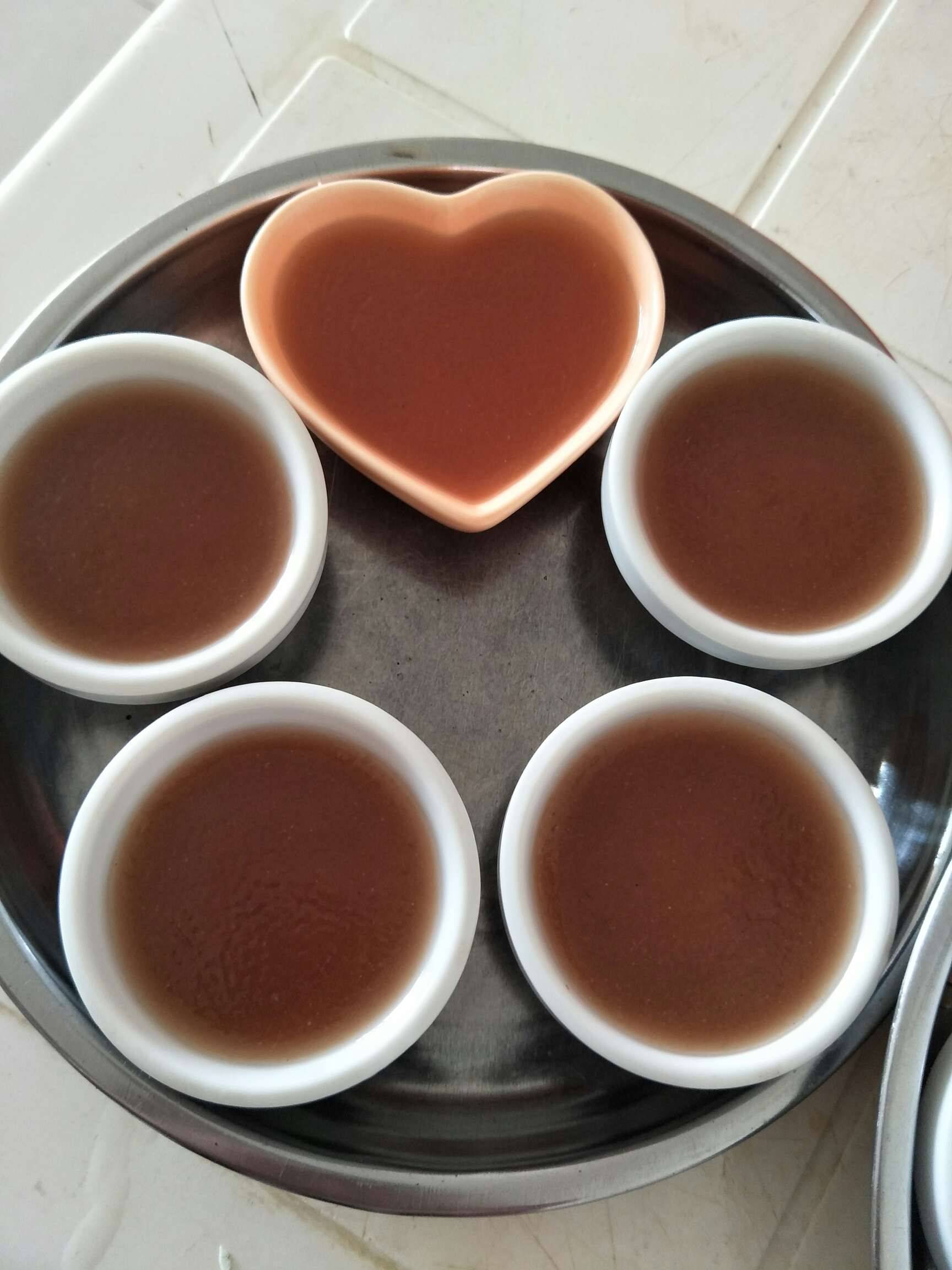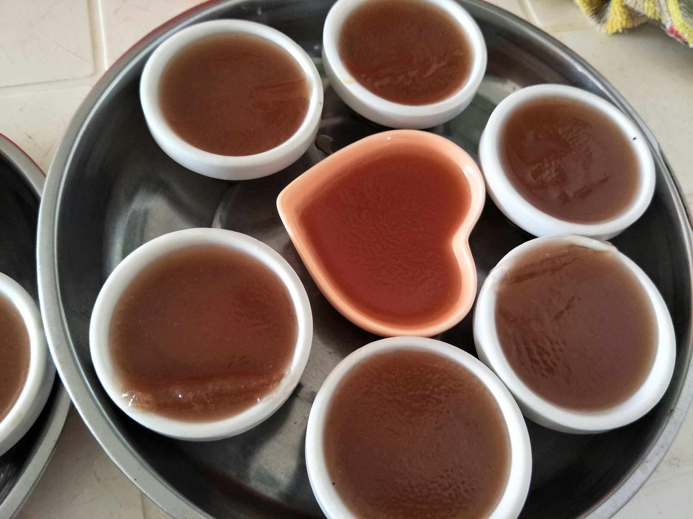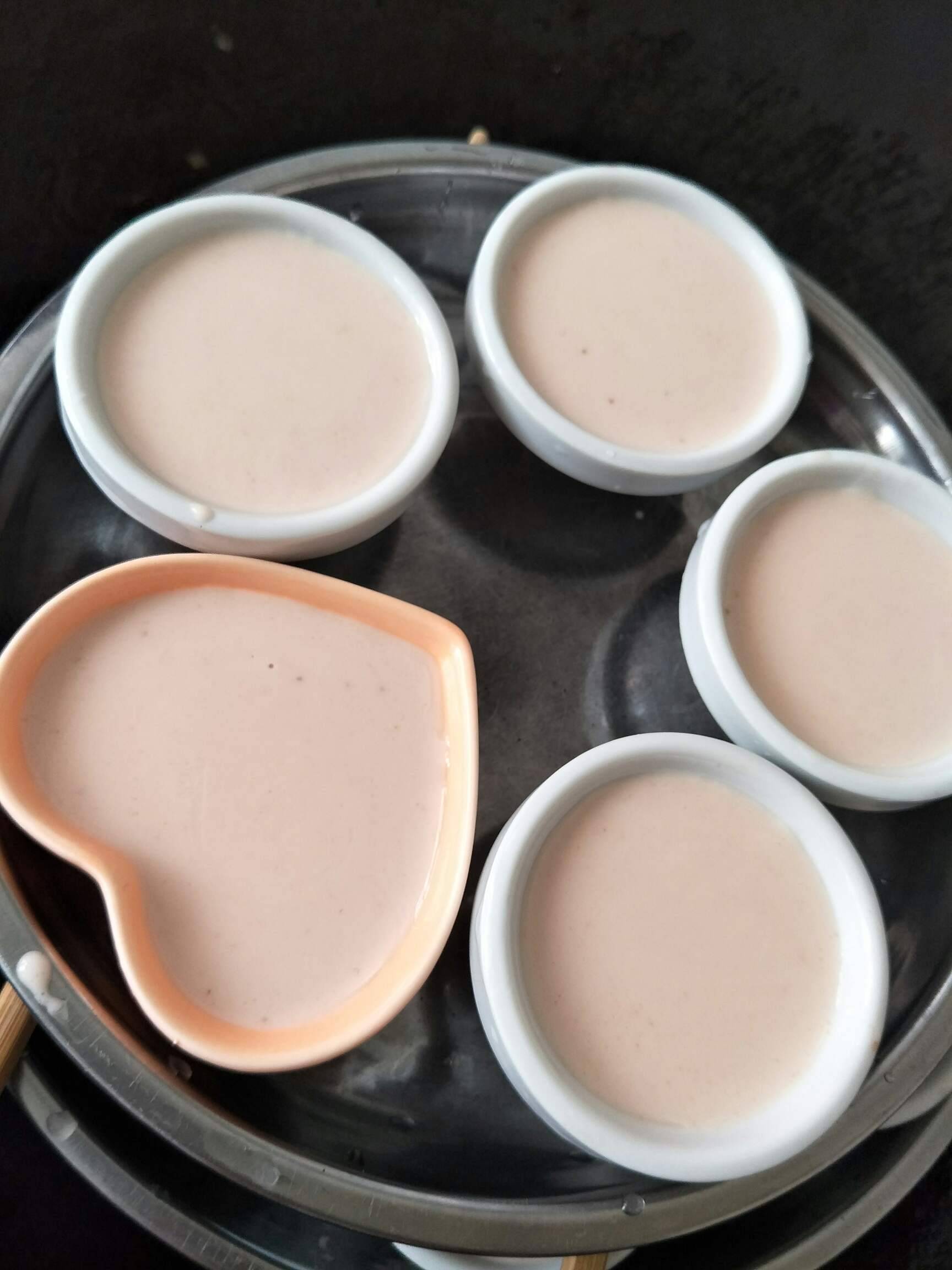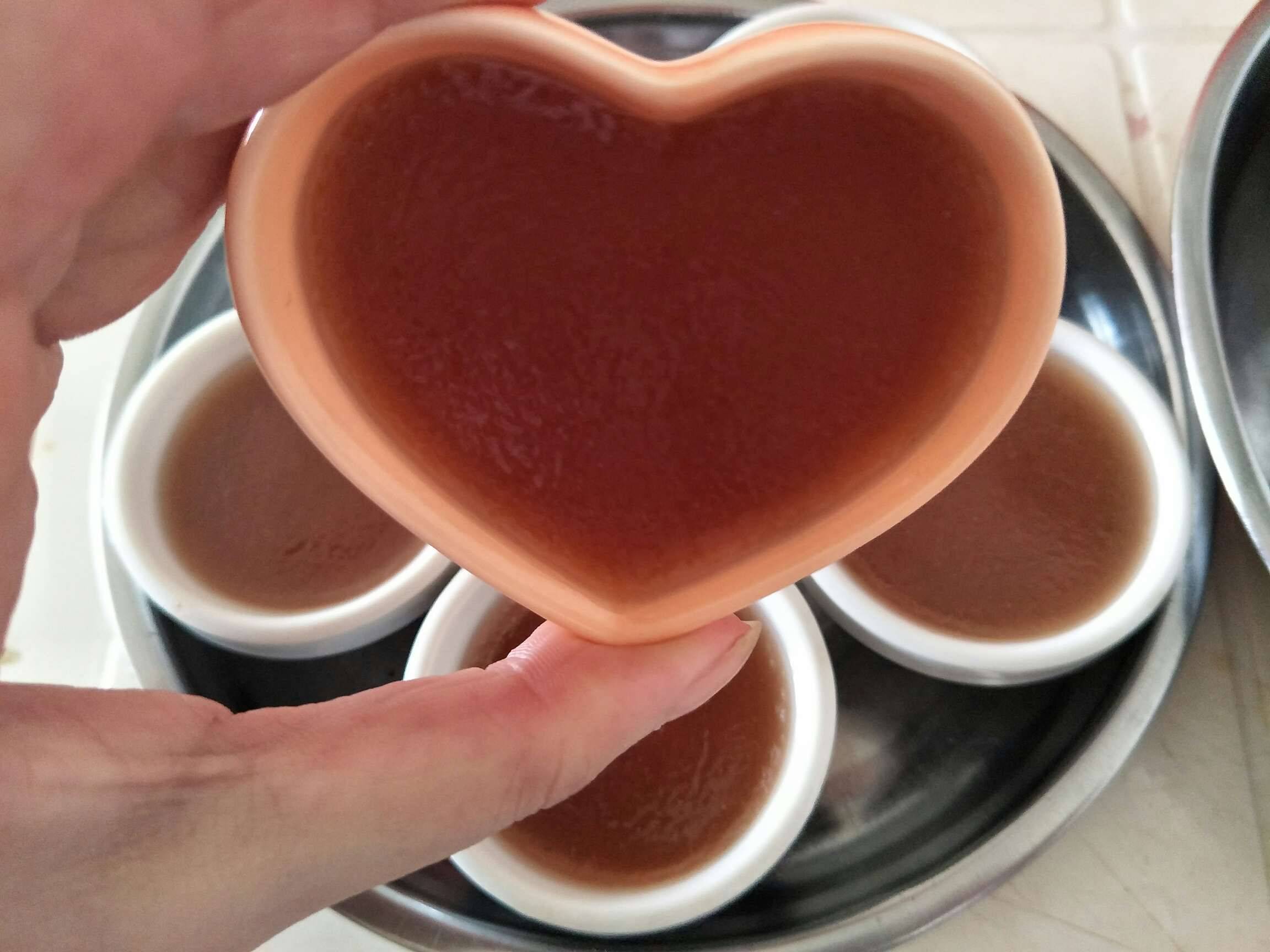 今天重新来,那个粉很难搅开,我还隔了一下,加了草莓粉,这个要细心点,做了不到200g粉,10个钵仔,再加两个心形的。