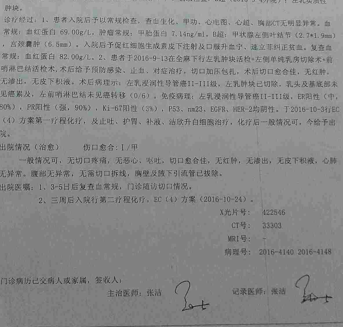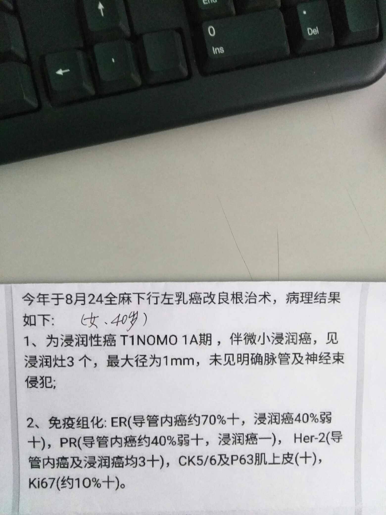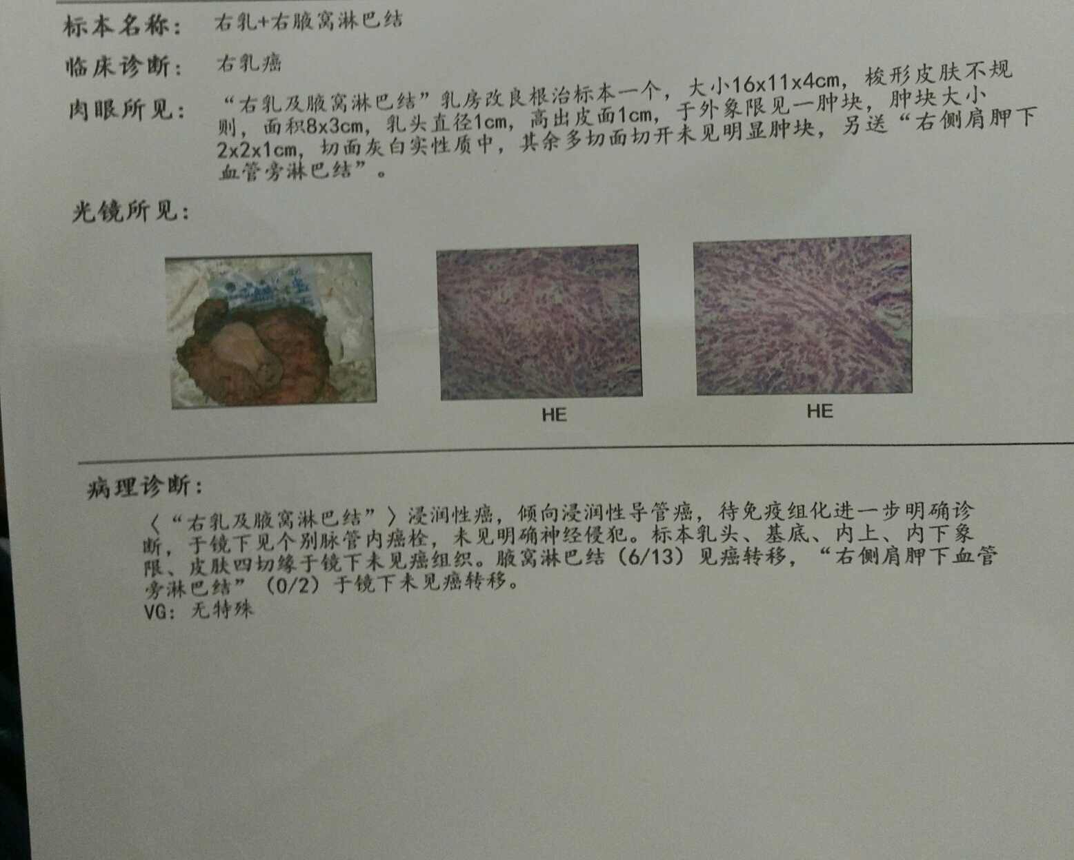 我和你差不多也是ER和PR阴,HER2是2 要靶向冶疗,也是写的高级别浸润性导管癌。现在也没搞清楚高级别是什么意思。