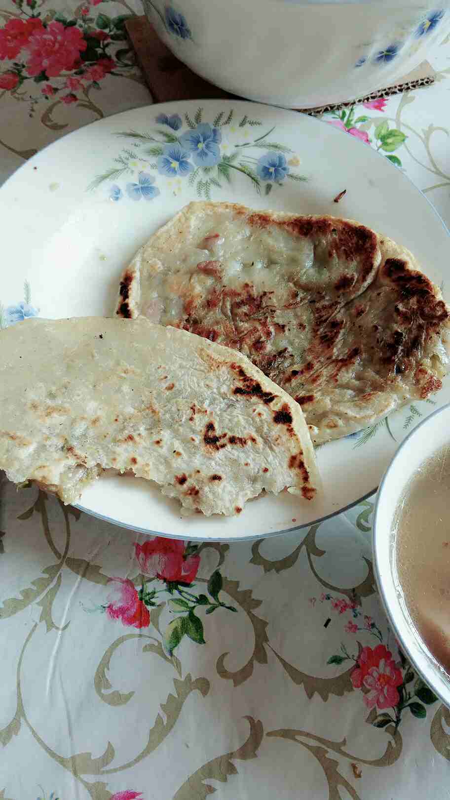 今天的午餐,奶奶做的饼子,。