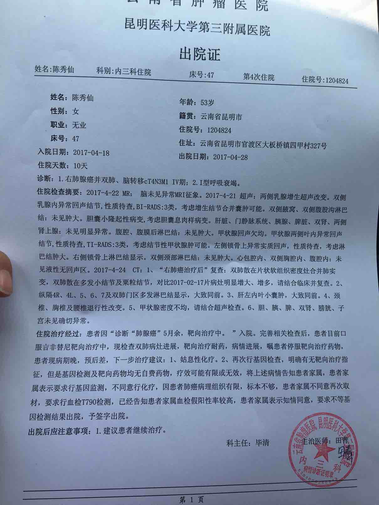 祝福!耐药以后做的基因检测么?