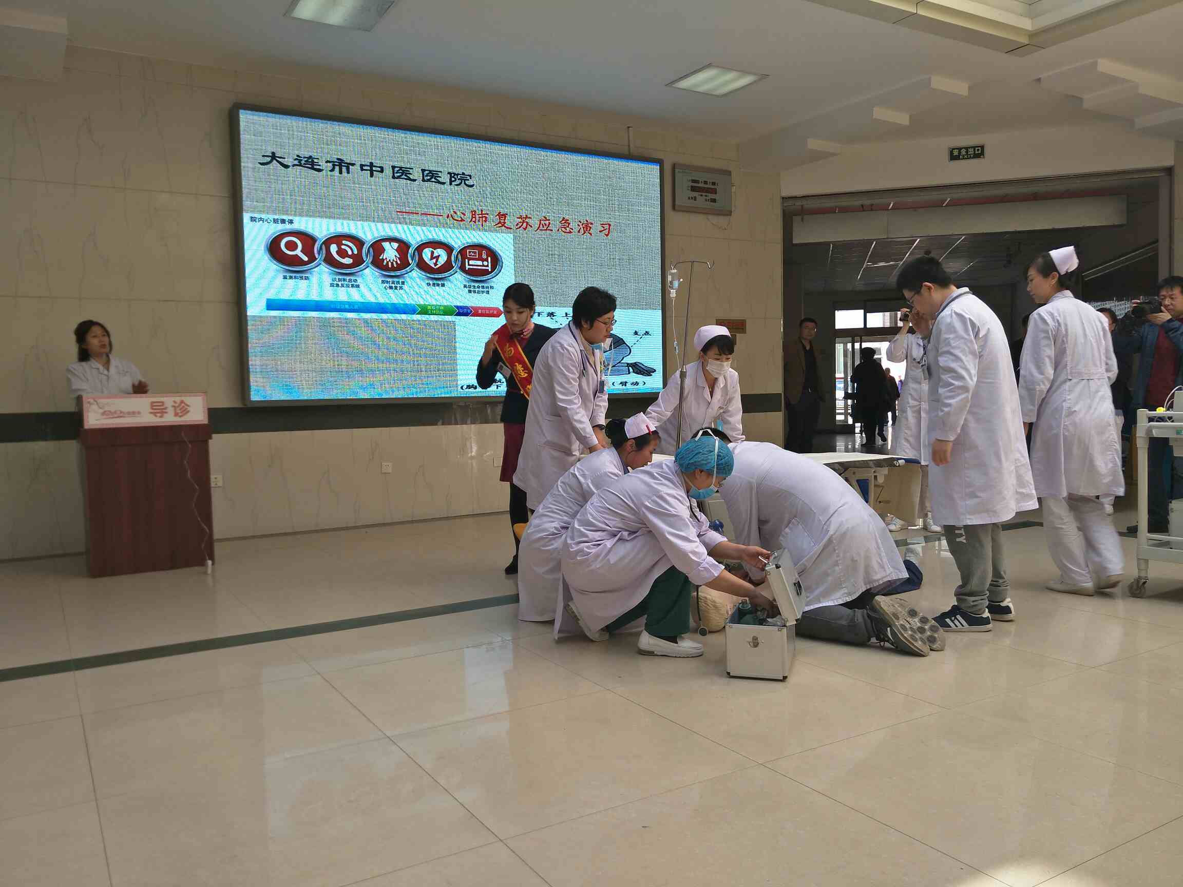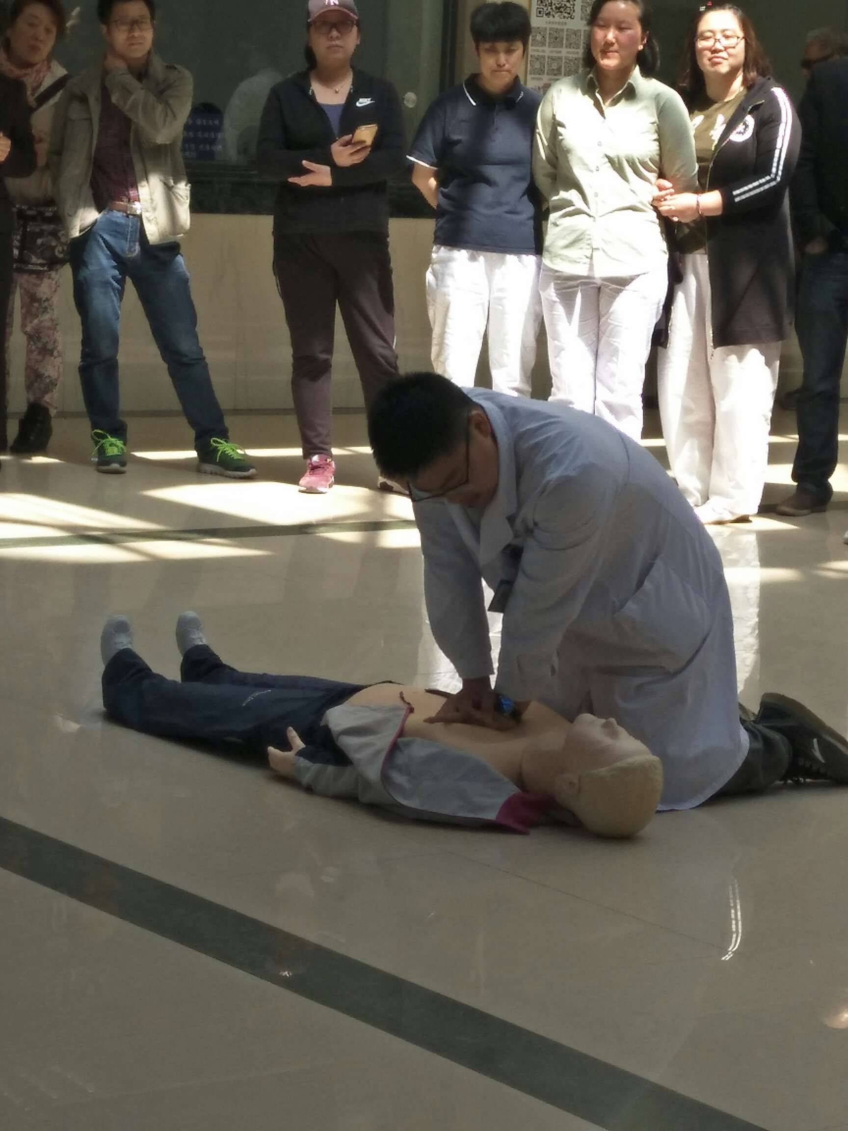 来取中药看到大堂在搞心肺复苏演练