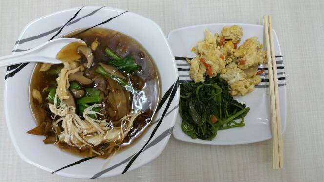 外面吃的:什锦河粉 ,蛋炒胡萝卜青豆玉米青椒,炒菠菜☺