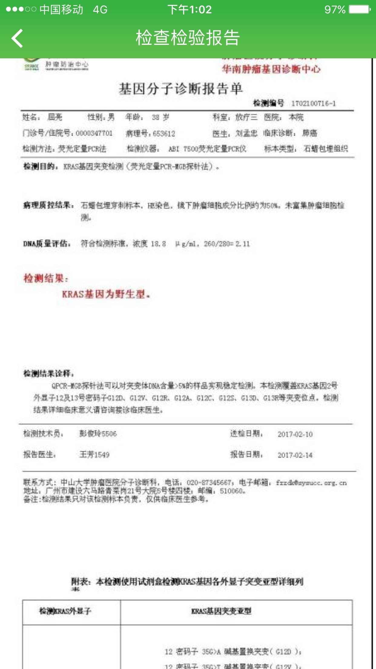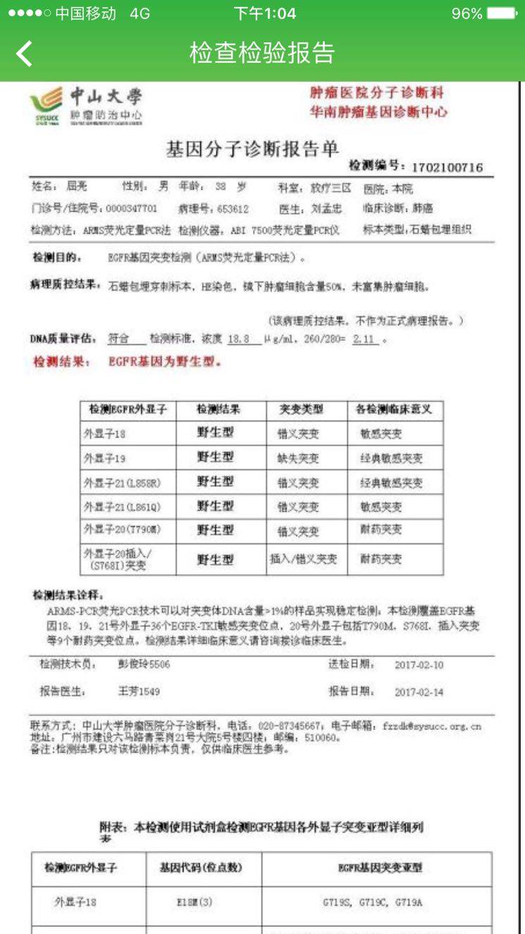 腺癌病人经过化疗病情稍稳定后,按说可以盲试靶向药,基因检测结果有存在假阴性的可能。